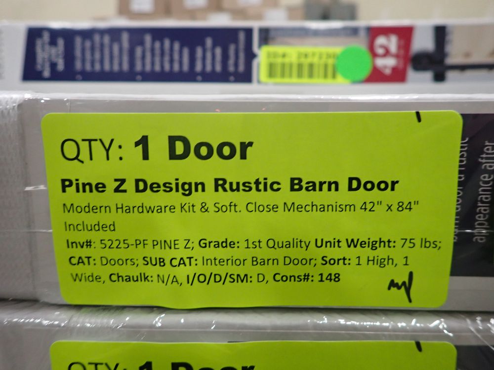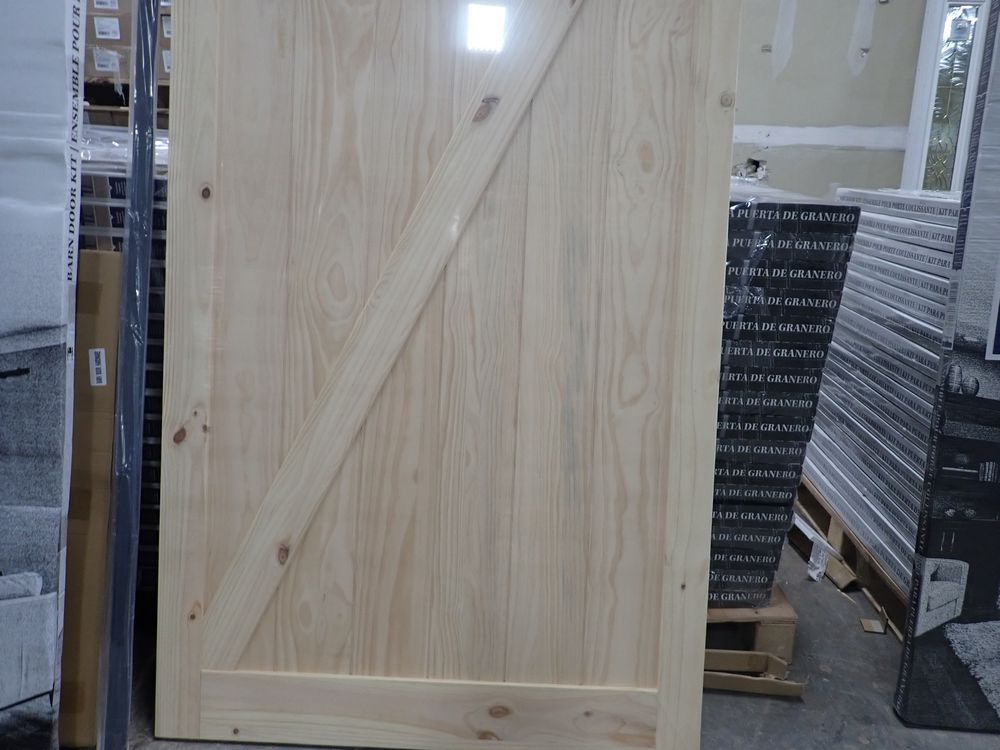 Pine Z Design Rustic Barn Door. Unfinished, Modern Hardware Kit & Soft, Close Mechanism 42" x 84" Included. Grade: 1 st. *Any manufacturer warranties are NOT VALID with any purchase at our Auctions unless stated otherwise.. Weight: 75. Sold by: Door. Sold as: Quantity x Price.