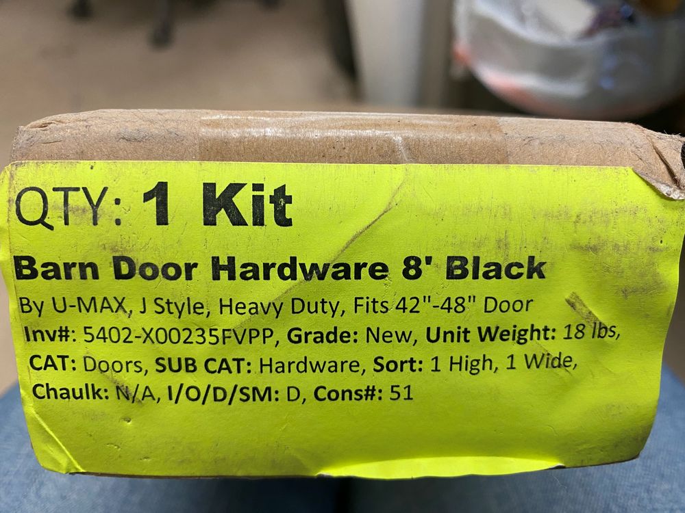 Barn Door Hardware 8' Black. By U-Max, J Style, Heavy Duty, Fits 42"-48" Door *Any manufacturer warranties are NOT VALID with any purchase at our Auctions unless stated otherwise.. Weight: 18 lbs.. Sold by: Kit. Sold as: Quantity x Price.