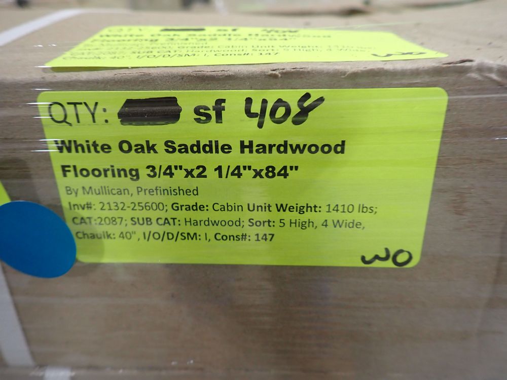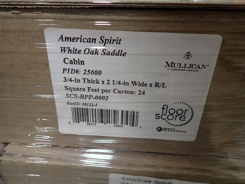 White Oak Saddle Hardwood Flooring 3/4" x 2 1/4" x 84". By: Mullican, Prefinished, Grade: Cabin. There are 17 boxes in this lot. *Any manufacturer warranties are NOT VALID with any purchase at our Auctions unless stated otherwise.. Weight: x. Sold by: Square Foot. Sold as: Quantity x Price.