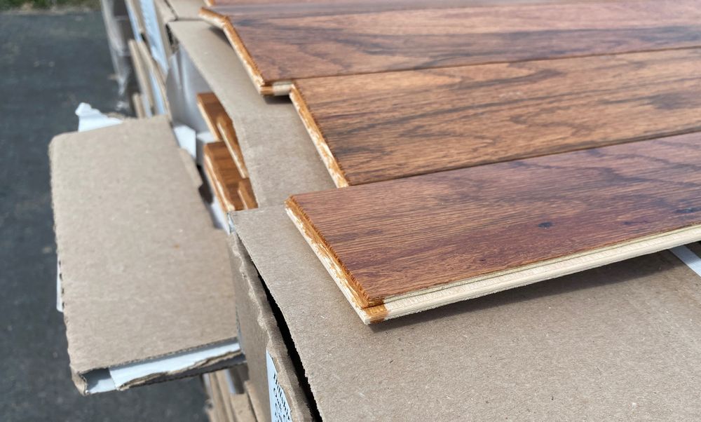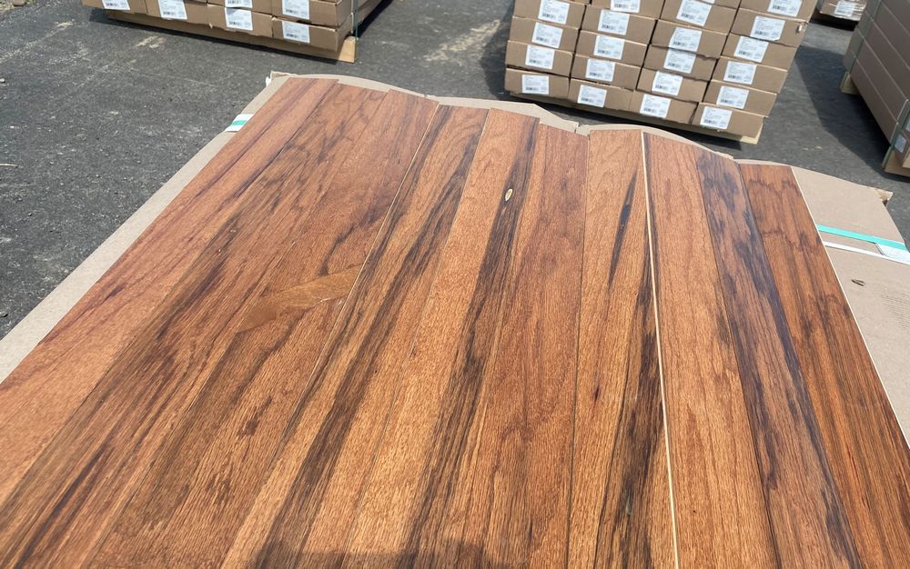 Oak Caramel Engineered Hardwood Flooring 3/8" x 3" x RL. By Mullican, Prefinished, Grade: Cabin. Chalk marks are from manufacturer and can be wiped off. 16 Boxes. Cabin/Utility/Tavern Grade: This flooring product will have varying wood characteristics and colors to include streaks, deeper knots and burls, small splits, wormholes, and even marks during the milling process such as machine burns. It may also have a large variance in color and grain patterns. The boards are typically 10” to 30” with an average board length of 16”. It is usually packaged in mini bundles of 18-20 sf per bundle. It is ok for 5” wide to be heavier in shorter pieces. Cabin grade is a stable, installable product but please account up to 10%-20% waste. Please refer to the Documents tab under this product for additional hardwood flooring information. *Any manufacturer warranties are NOT VALID with any purchase at our Auctions unless stated otherwise.. Weight: 910. Sold by: Square Foot. Sold as: Quantity x Price.