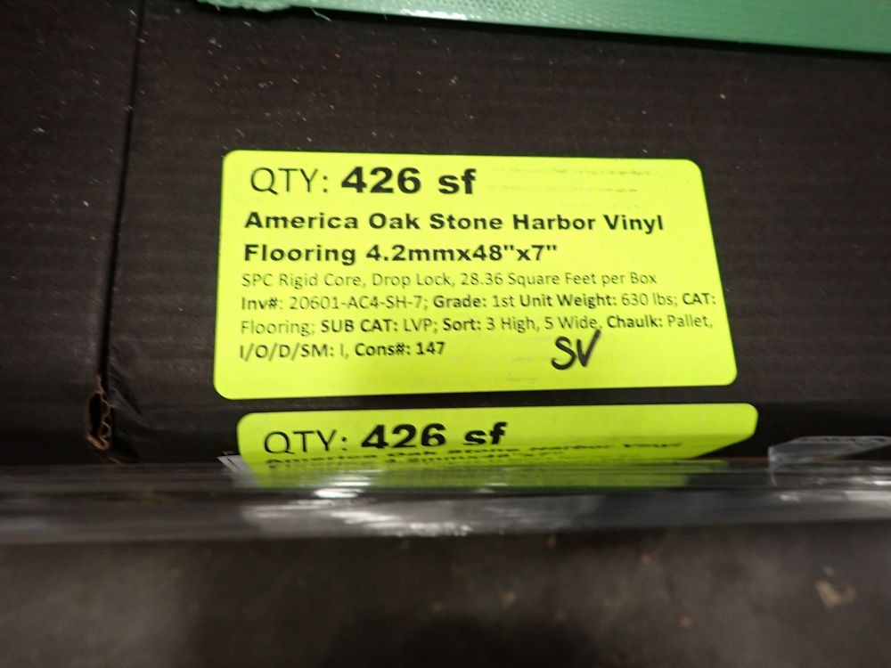 America Oak Stone Harbor Vinyl Flooring 4.2mmx 48" x 7". SPC Rigid Core, Drop Lock, 15 Boxes, 28.36 Square Foot Per Box. Grade: 1st *Any manufacturer warranties are NOT VALID with any purchase at our Auctions unless stated otherwise.. Weight: 630. Sold by: Square Foot. Sold as: Quantity x Price.