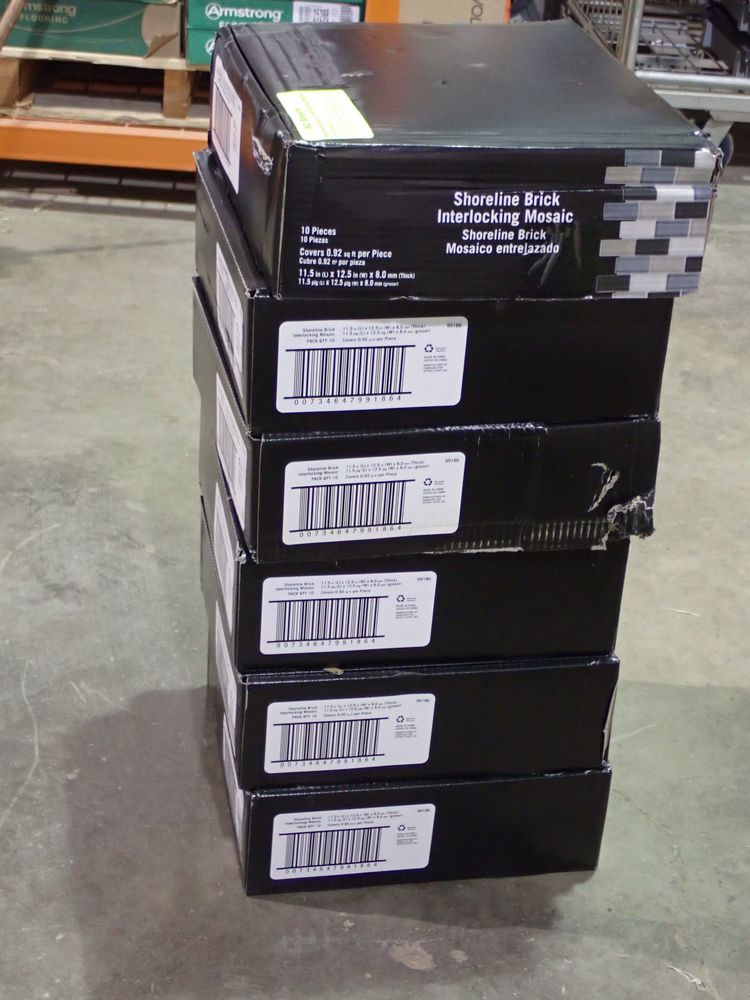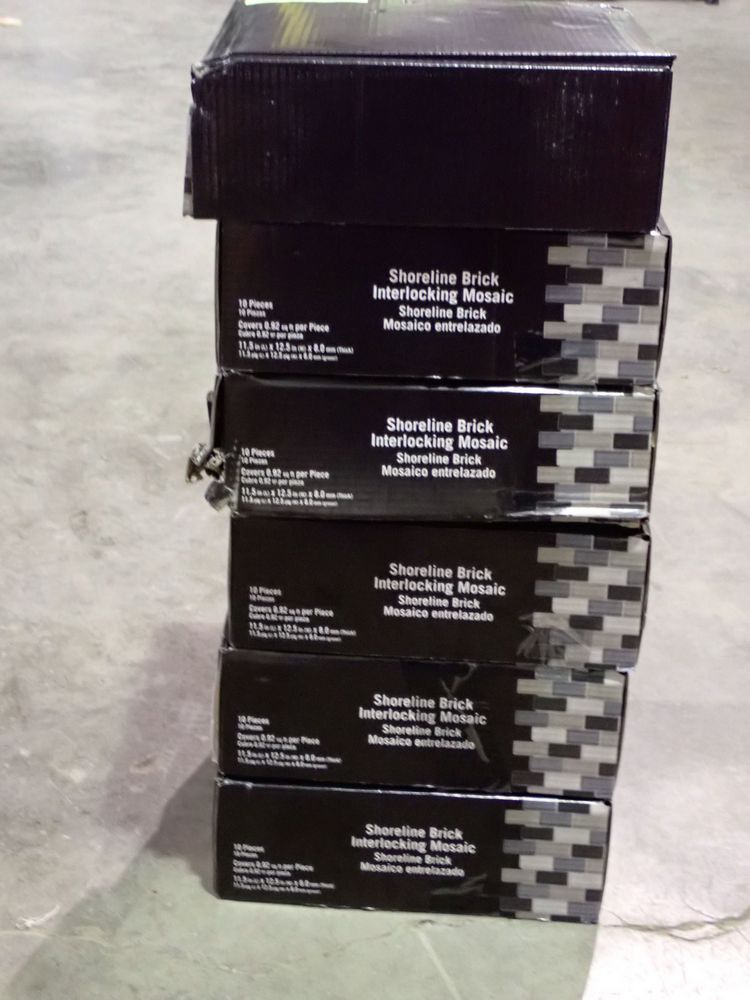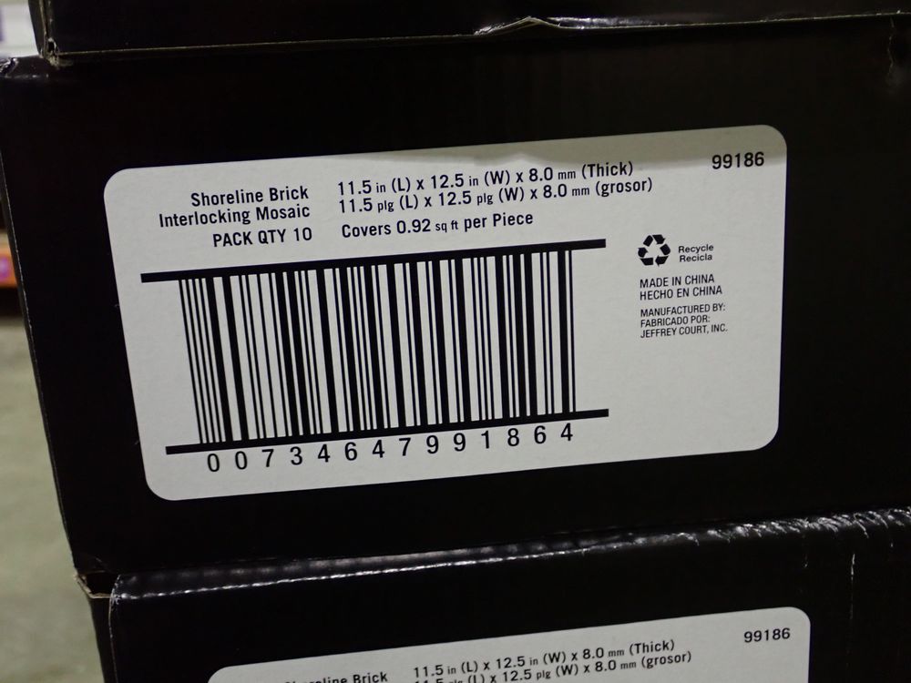 Shoreline Brick Interlocking Mosaic 11.5"x12.5". 10 pieces per box, covers 0.92 sq ft per piece. Grade: B *Any manufacturer warranties are NOT VALID with any purchase at our Auctions unless stated otherwise.. Weight: X. Sold by: Sheets. Sold as: Quantity x Price.
