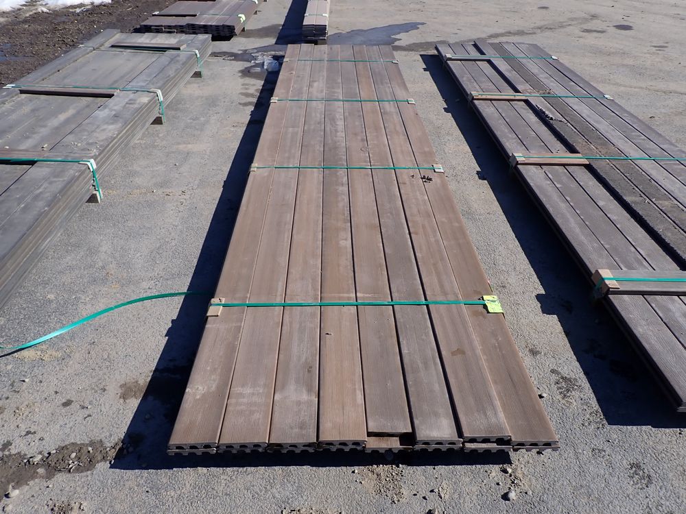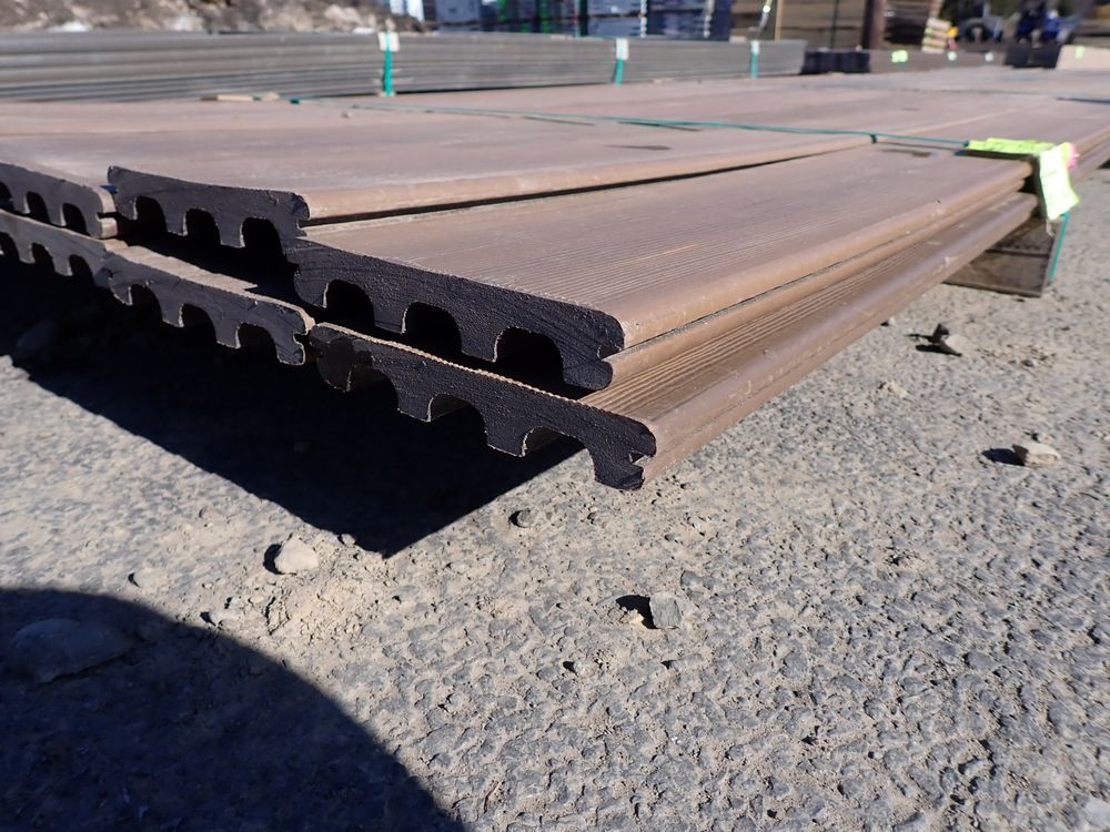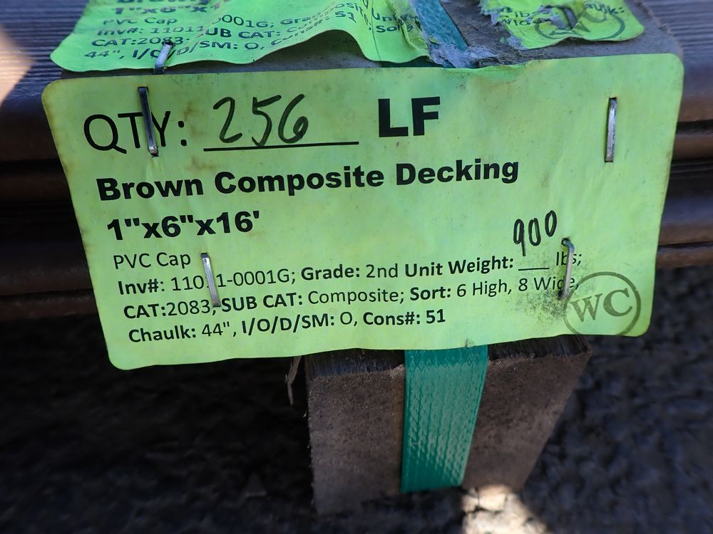 Brown Composite Decking 1" x 6" x 16'. PVC Cap, Grooved on both sides, Scalloped. Grade: 2nd. *Any manufacturer warranties are NOT VALID with any purchase at our Auctions unless stated otherwise.. Weight: 900. Sold by: Linear Foot. Sold as: Quantity x Price.
