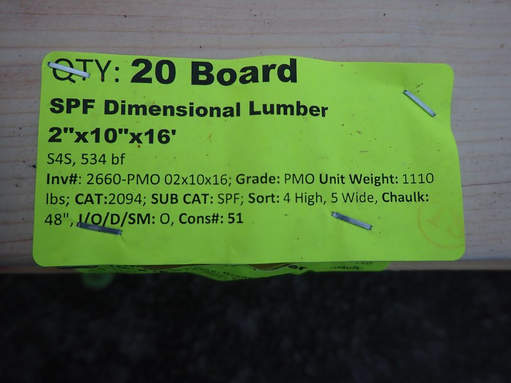 SPF Dimensional Lumber 2" x 10" x 16' *See Description*. S4S, 534 bf. Grade: PMO. *Imperfections to boards, Pay attention to Photos* *Any manufacturer warranties are NOT VALID with any purchase at our Auctions unless stated otherwise.. Weight: 1110. Sold by: Board. Sold as: Quantity x Price.