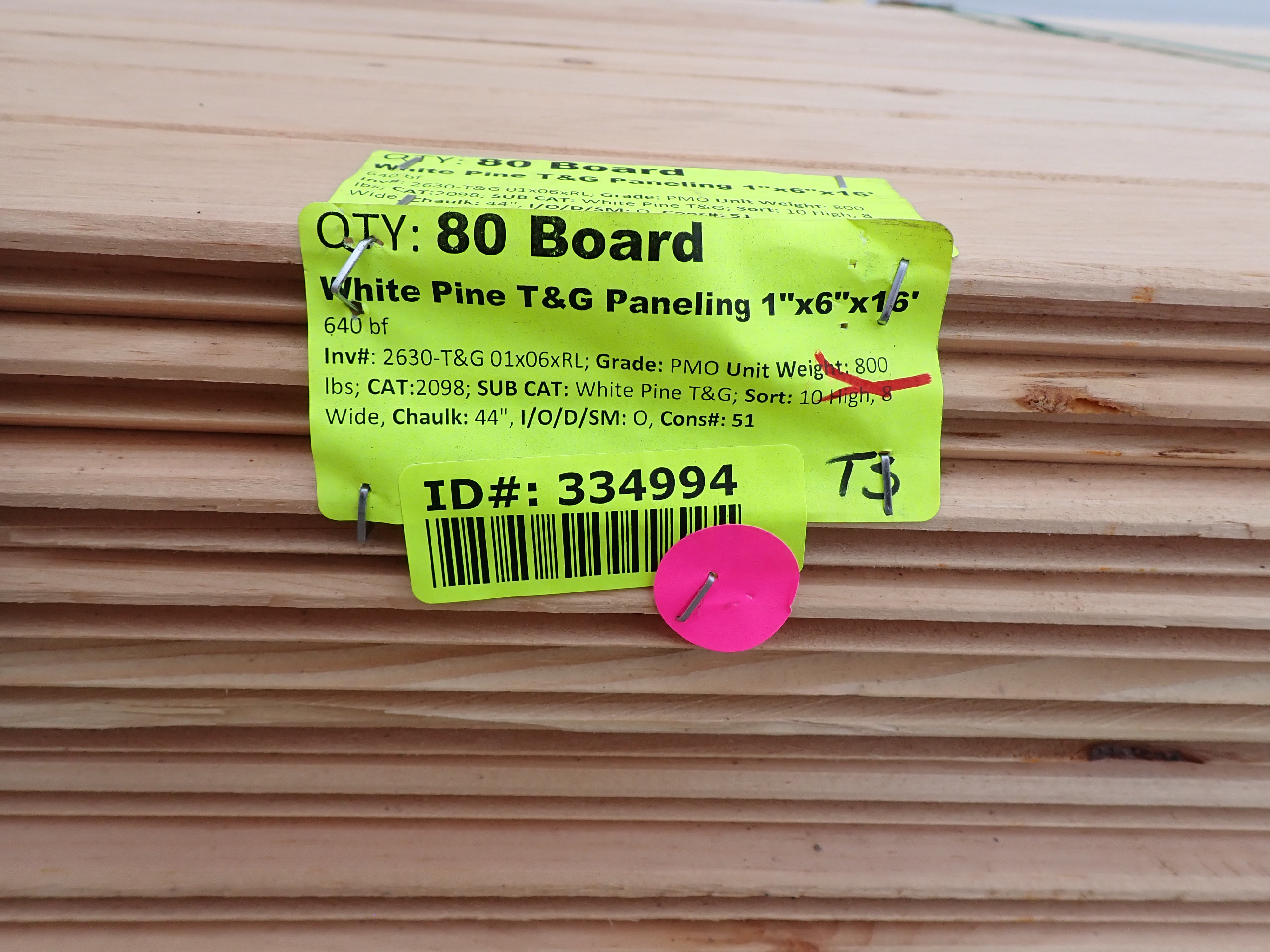 White Pine T&G Paneling 1" x 6" 16'. 640 bf, Grade: PMO Face Side Has All Edge And Center Bead, Back Of Board Profile Varies *Any manufacturer warranties are NOT VALID with any purchase at our Auctions unless stated otherwise.. Weight: 800. Sold by: Board. Sold as: Quantity x Price.