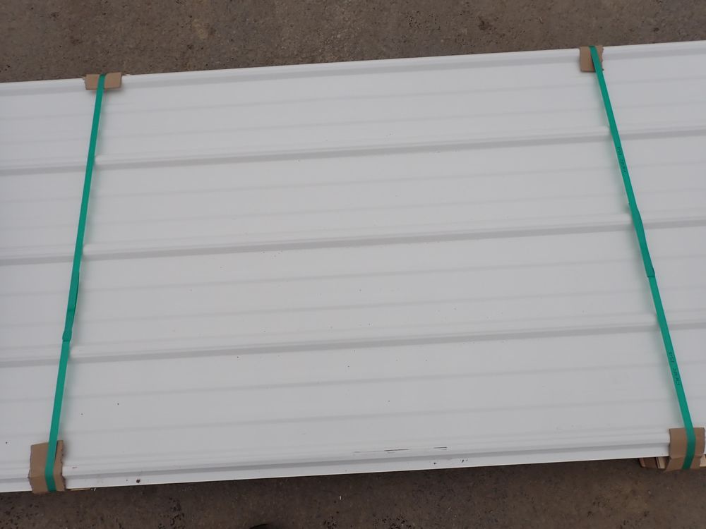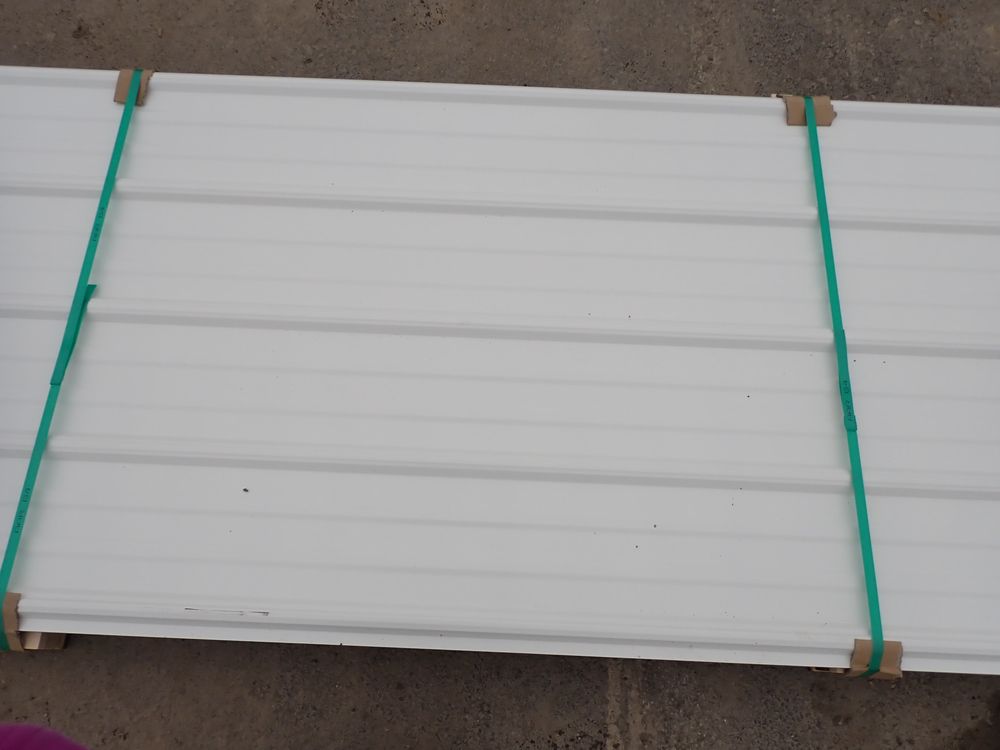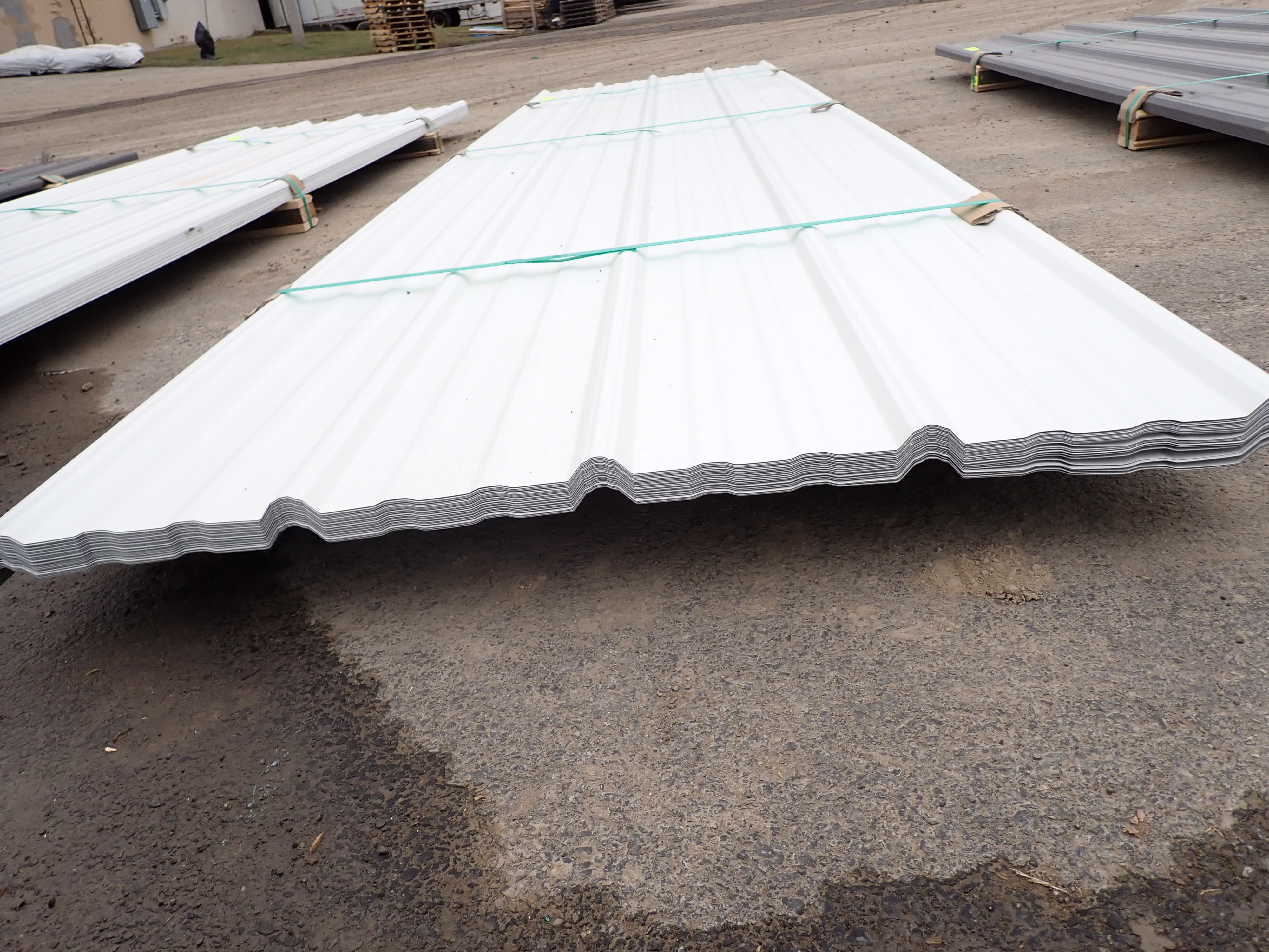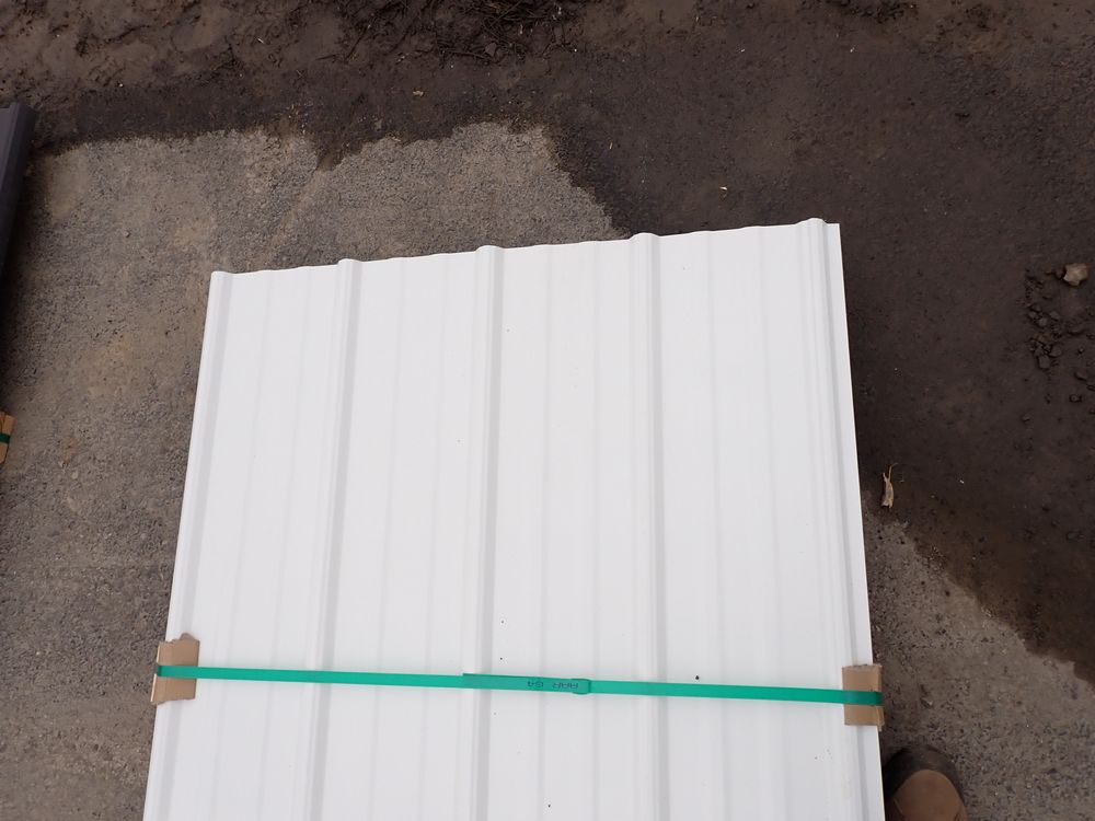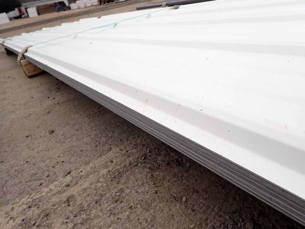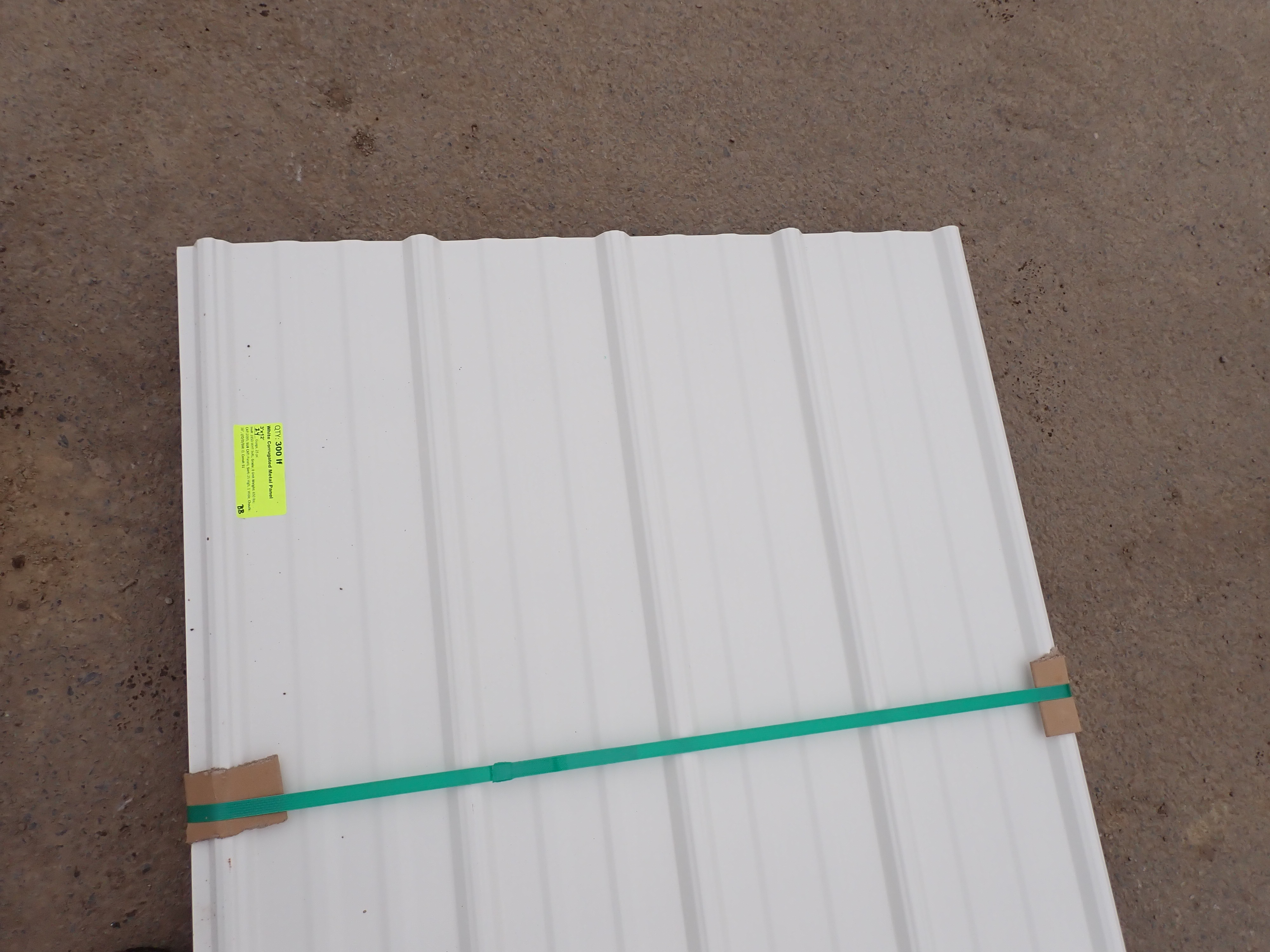 White Corrugated Metal Panel 3'x12'. 24 Guage, 25 Piece. Grade: B *Any manufacturer warranties are NOT VALID with any purchase at our Auctions unless stated otherwise.. Weight: 650 lbs.. Sold by: Linear Foot. Sold as: Quantity x Price.
