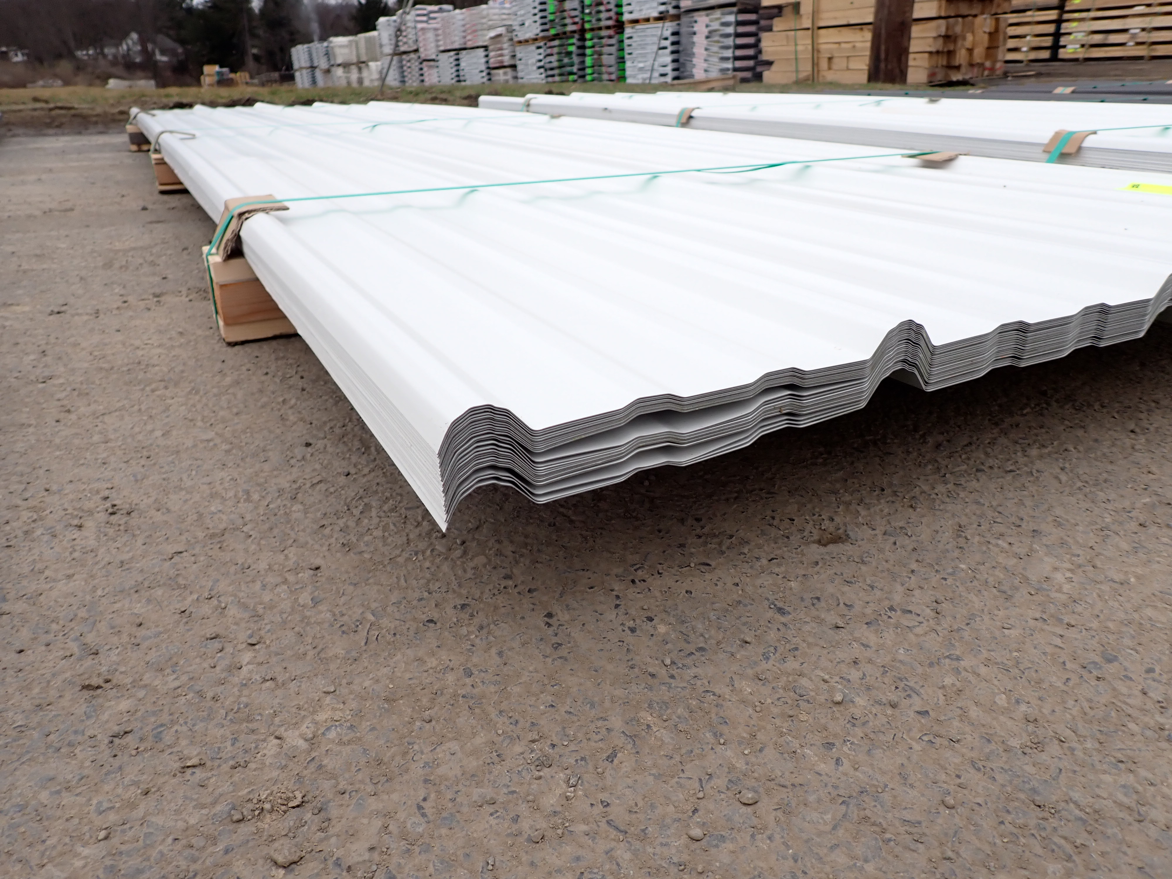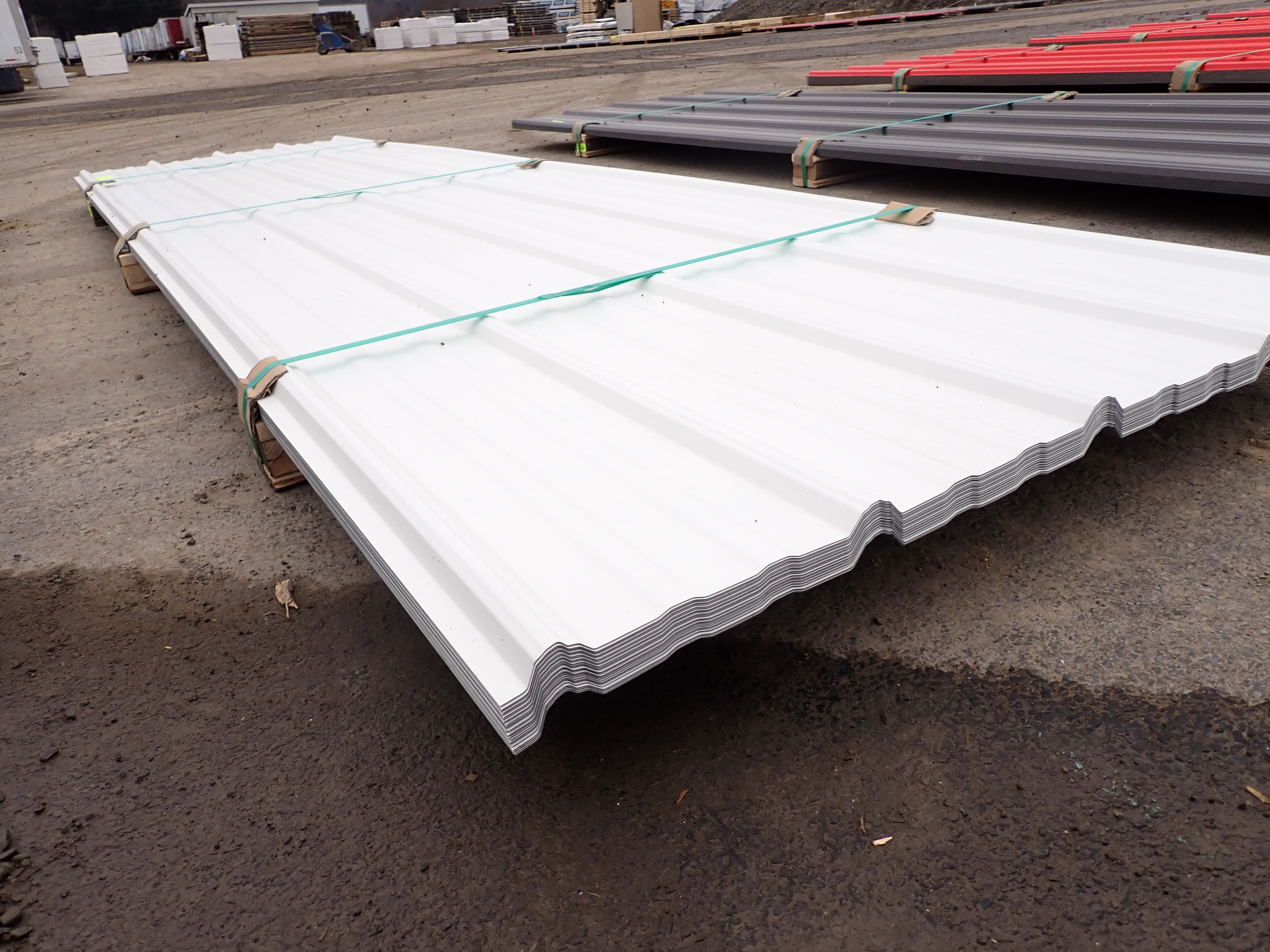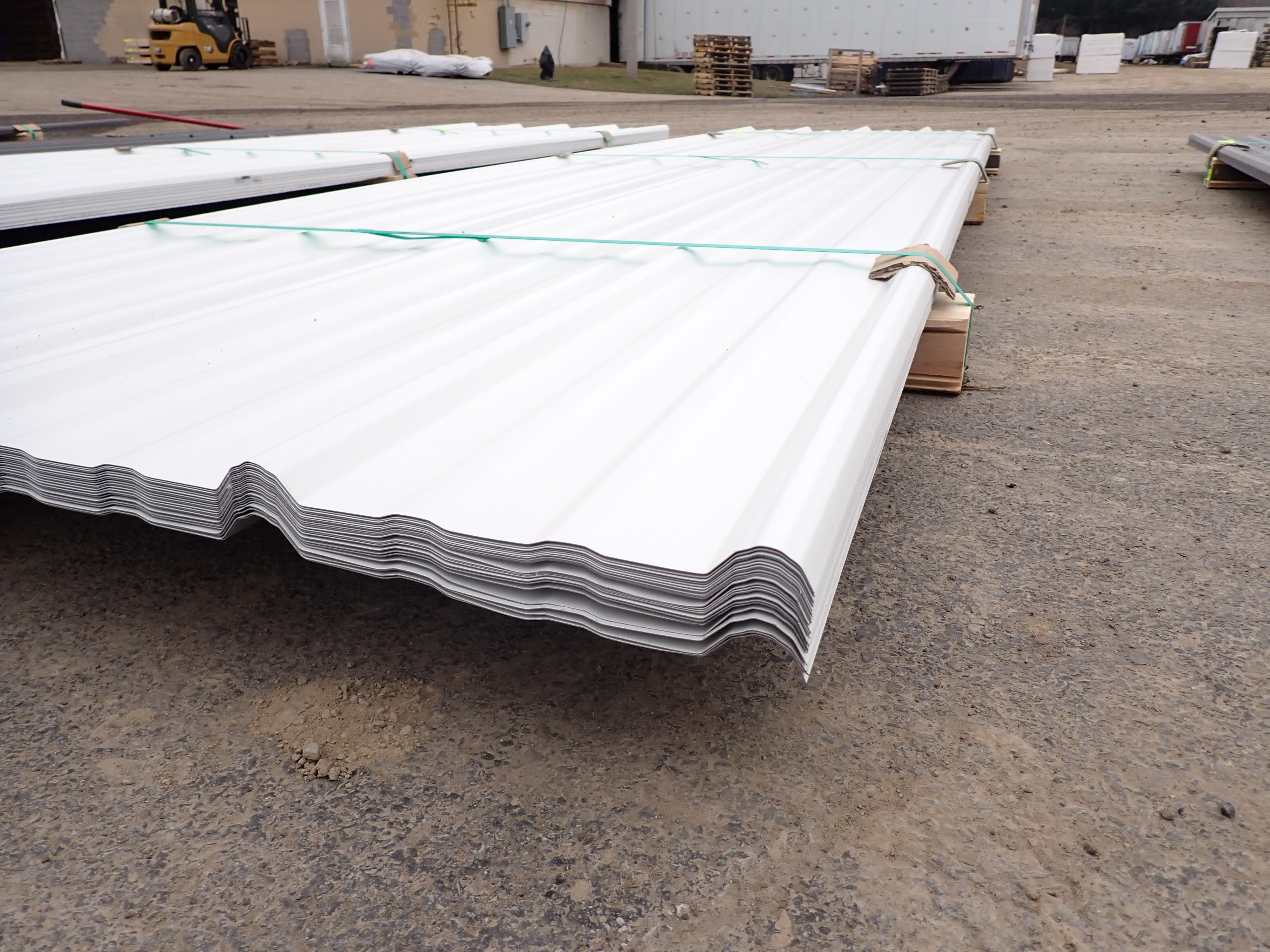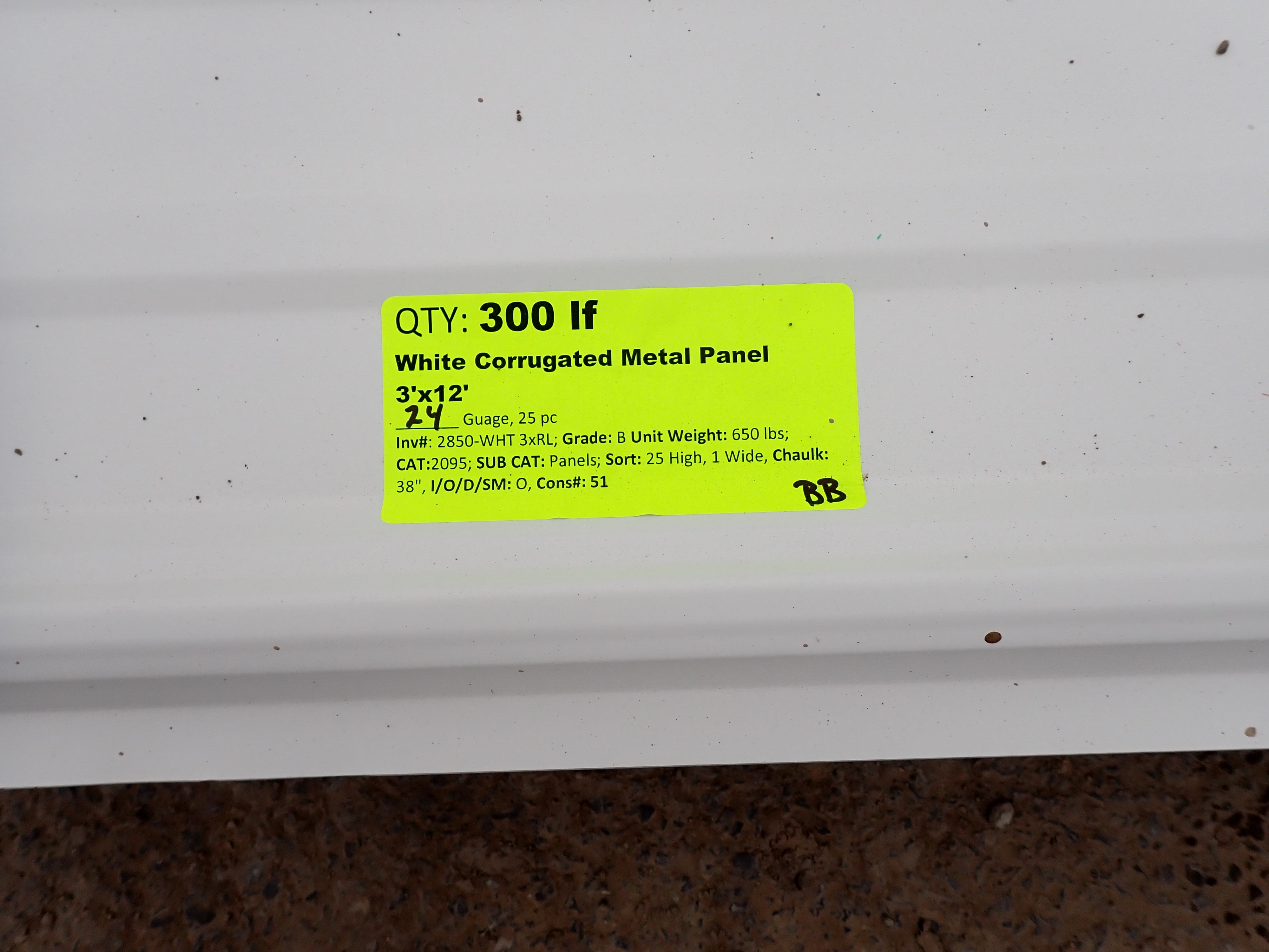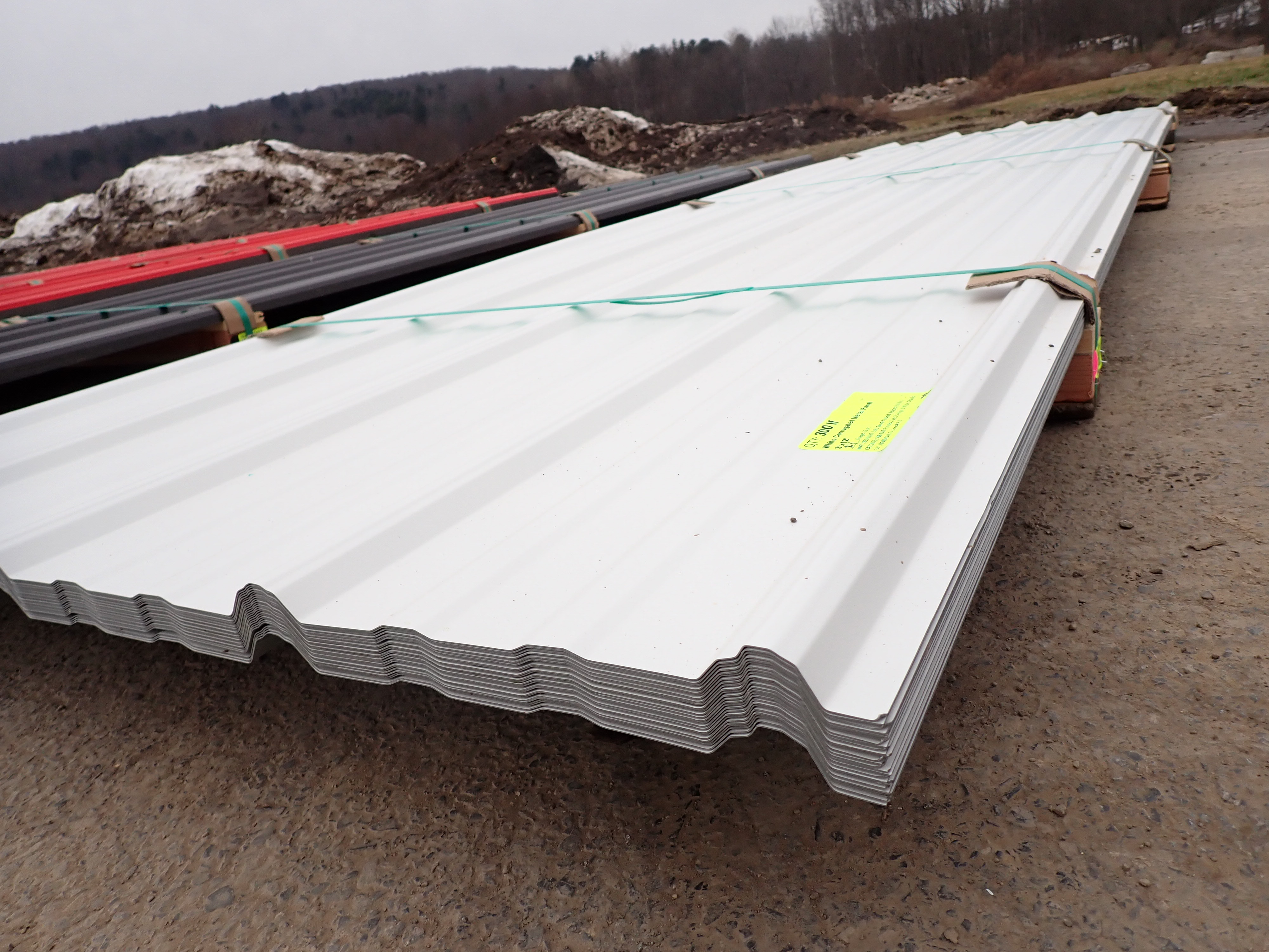 White Corrugated Metal Panel 3'x12'. 24 Guage, 25 Piece. Grade: B *Any manufacturer warranties are NOT VALID with any purchase at our Auctions unless stated otherwise.. Weight: 650 lbs.. Sold by: Linear Foot. Sold as: Quantity x Price.