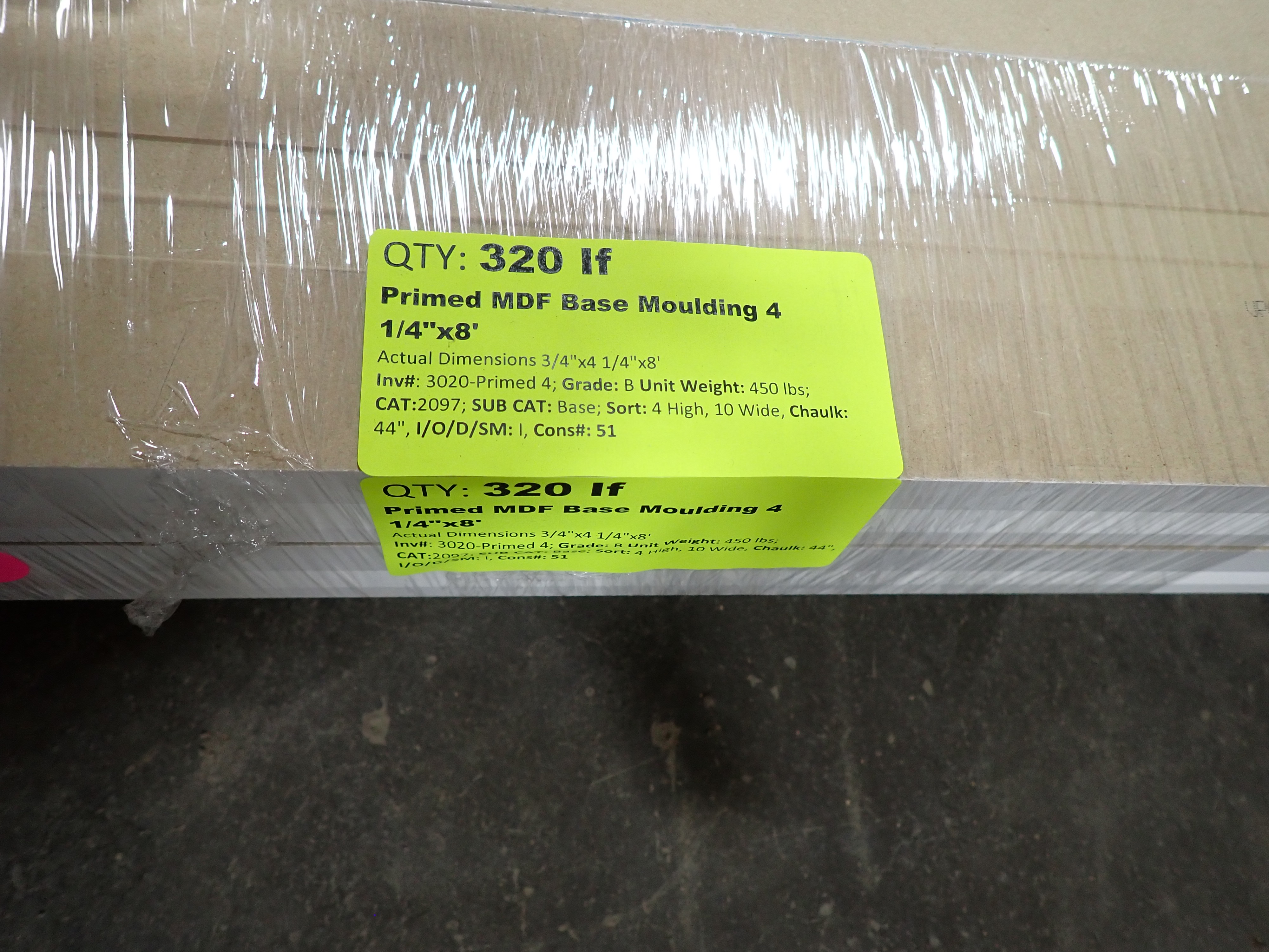 Primed MDF Base Molding 4 1/4" x 8'. 40 Pcs, Grade: B, Actual Dimensions: 3/4" x 4 1/4" x 8' *Any manufacturer warranties are NOT VALID with any purchase at our Auctions unless stated otherwise.. Weight: 450. Sold by: Linear Foot. Sold as: Quantity x Price.