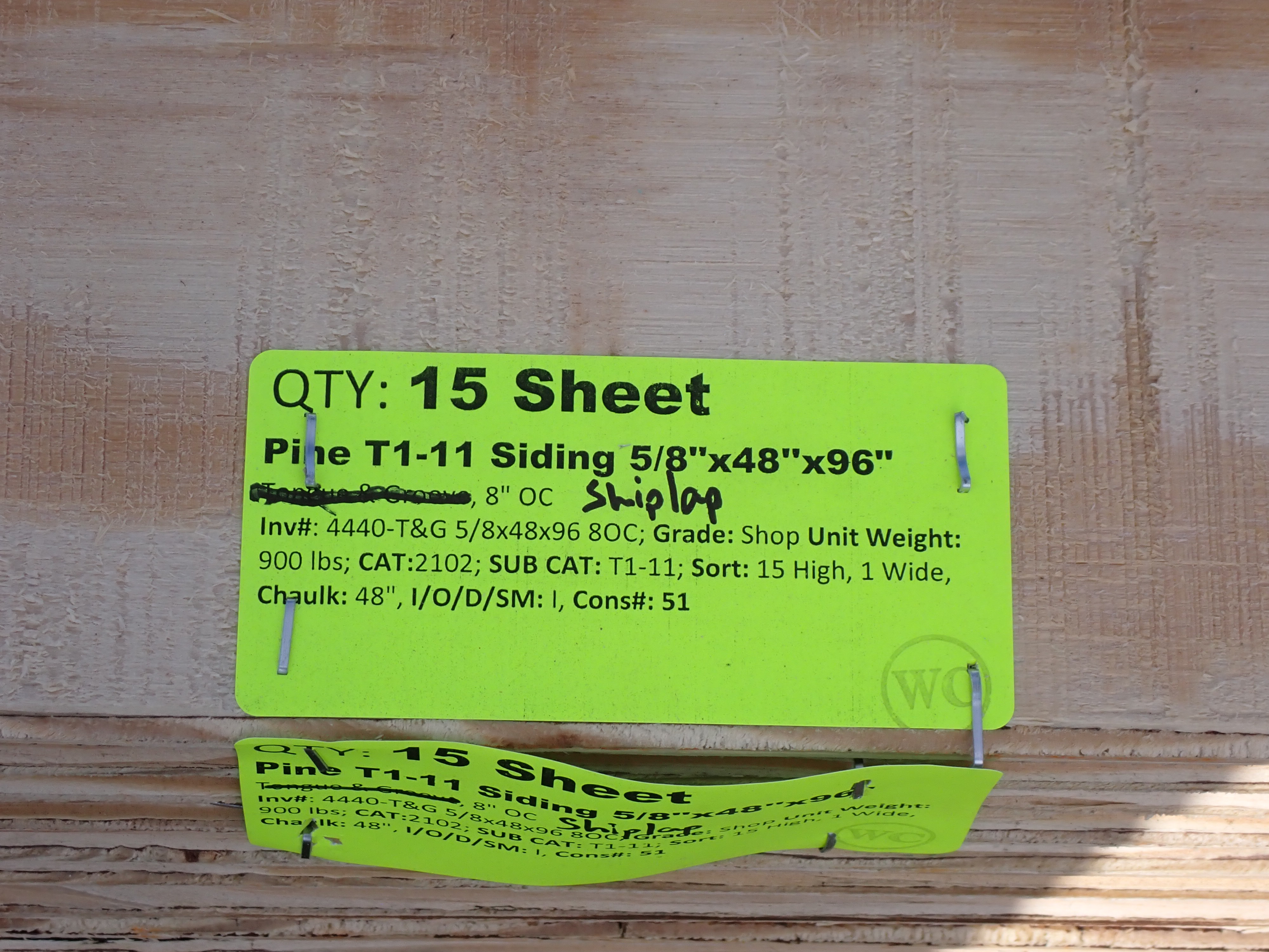 Pine T1- 11 Siding 5/8" x 48" x 96". Shiplap, 8" OC, Grade: Shop. *Any manufacturer warranties are NOT VALID with any purchase at our Auctions unless stated otherwise.. Weight: 900. Sold by: Sheet. Sold as: Quantity x Price.