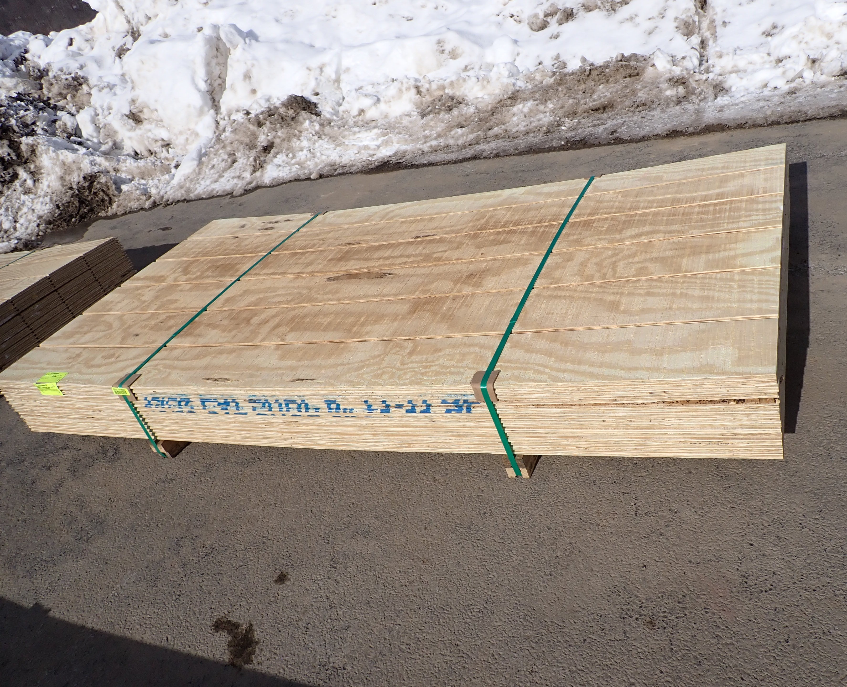 Pine T1- 11 Siding 5/8" x 48" x 96". Shiplap, 8" OC, Grade: Shop. *Any manufacturer warranties are NOT VALID with any purchase at our Auctions unless stated otherwise.. Weight: 900. Sold by: Sheet. Sold as: Quantity x Price.