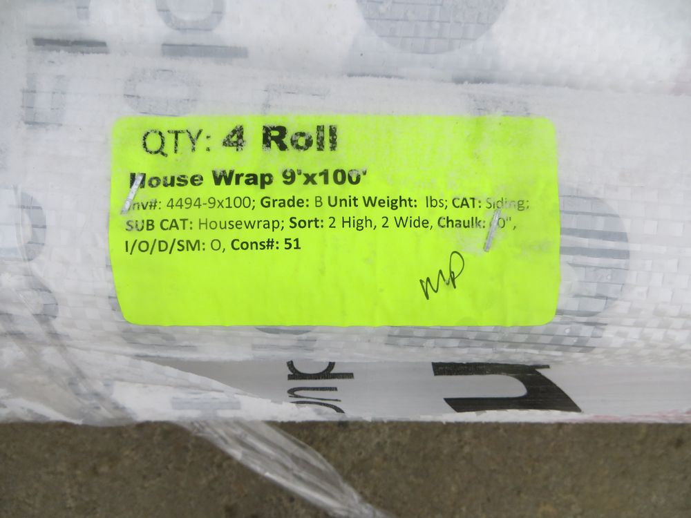 House Wrap 9' x 100'. Grade: B. *Any manufacturer warranties are NOT VALID with any purchase at our Auctions unless stated otherwise.. Weight: 90. Sold by: Roll. Sold as: Quantity x Price.