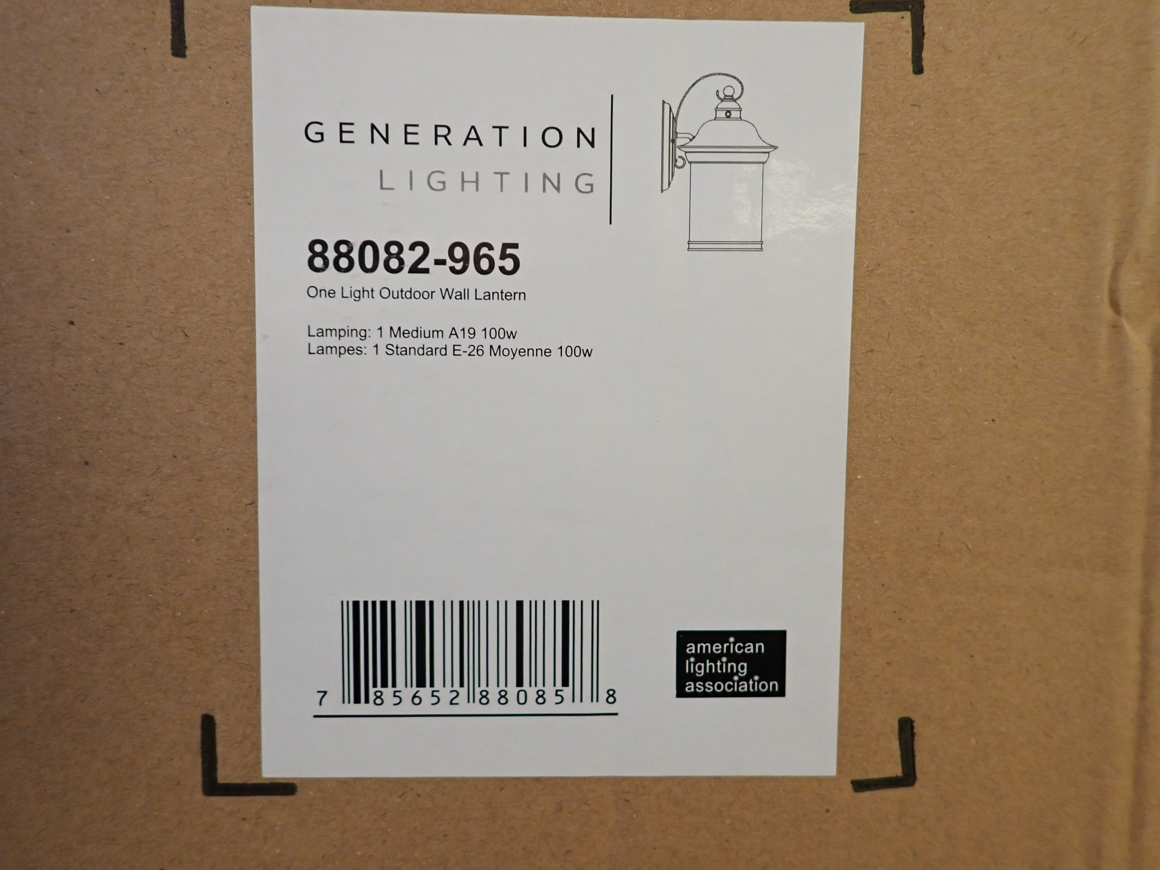 Single Light Outdoor Wall Lantern. Generation Lighting, Requires 1 Medium A19 100W Bulb; Grade A *Any manufacturer warranties are NOT VALID with any purchase at our Auctions unless stated otherwise.. Weight: 8.5. Sold by: Piece. Sold as: Quantity x Price.