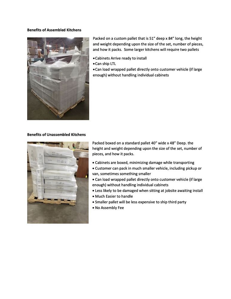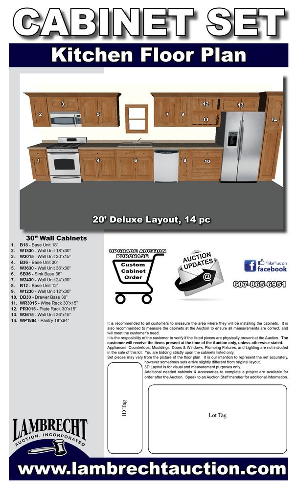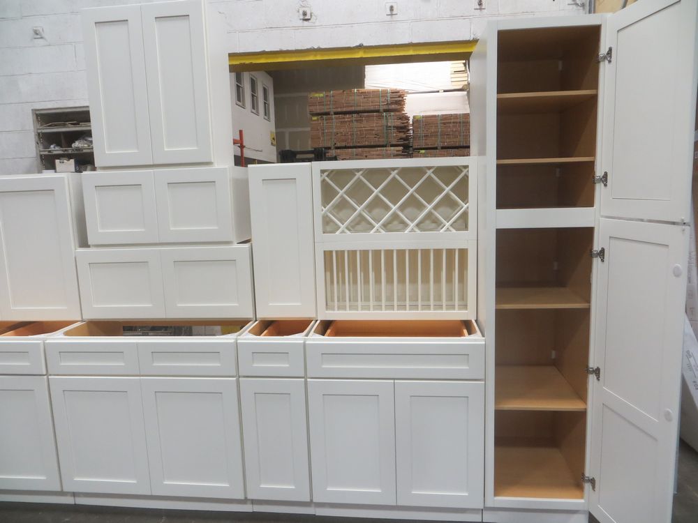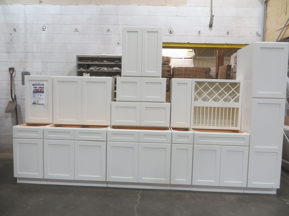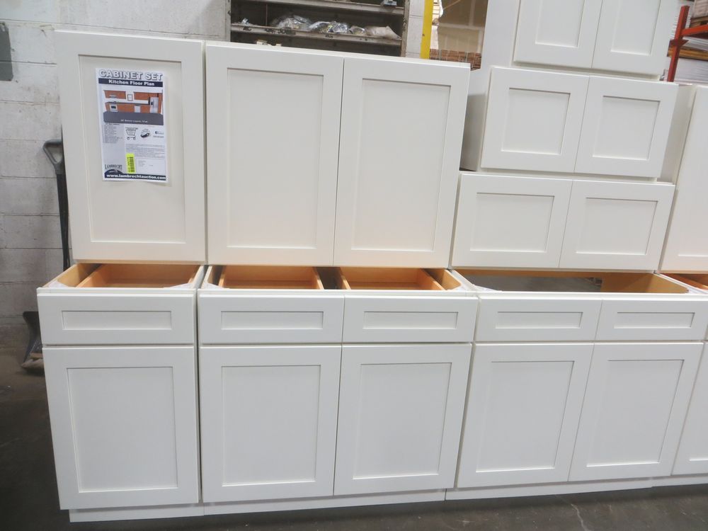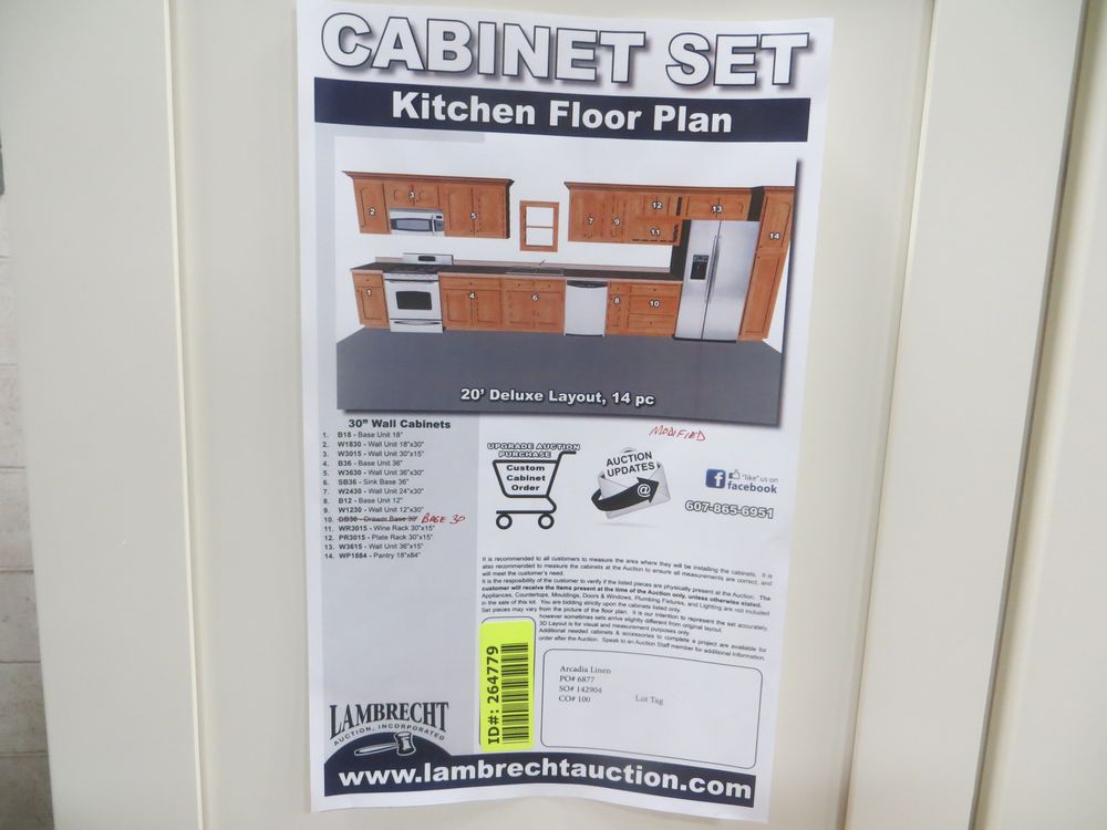 Arcadia Linen Kitchen Cabinet Set 20'. Deluxe Layout. 30" Walls. ASSEMBLY OPTION IS NOT AVAILABLE FOR THIS SET. By GHI, Additional pieces may be available for order to the high bidder. Additional cabinets ship boxed, ready to assemble. -3/4” Solid Wood Face Frame -High Density Fiberboard Shaker Style Door and Drawer Front -1/2” Plywood Box Construction -5/8” Plywood Shelves -Full Overlay Doors and Drawer Fronts -Solid Wood Dovetail Drawer box -Soft Close Full Extension Drawer Gliders -Soft Close Doors -6-Way Adjustable Concealed Hinges -Additional Wall Cabinets Available in the Following Sizes; 30”, 36”, and 42”; if you would like a different size that what this cabinet is listed as please call our office at 607-865-6951 for a quote. Enclosed in each cabinet set will be a Build Sheet which lists the individual cabinets in each set. As the cabinets are palletized each cabinet will be checked off and signed by our staff member to ensure that the set is complete at the time of pick-up. Please keep this Build Sheet on hand because it will be required if there is an issue with your cabinet set. Cabinet issues will not be addressed without this build sheet. *Any manufacturer warranties are NOT VALID with any purchase at our Auctions unless stated otherwise.. Weight: x. Sold by: Set. Sold as: Quantity x Price.