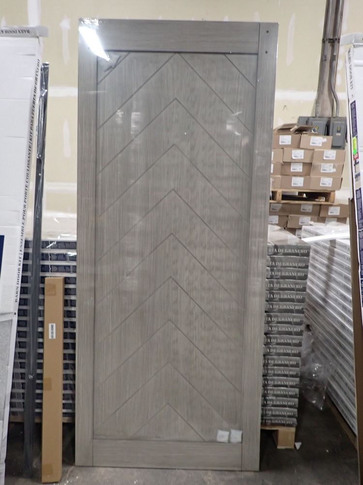Nickel Herringbone Rustic Barn Door. Hardware Kit & Soft, Close Mechanism 36" x 84" Included. Grade: 1st *Any manufacturer warranties are NOT VALID with any purchase at our Auctions unless stated otherwise.. Weight: 73. Sold by: Door. Sold as: Quantity x Price.