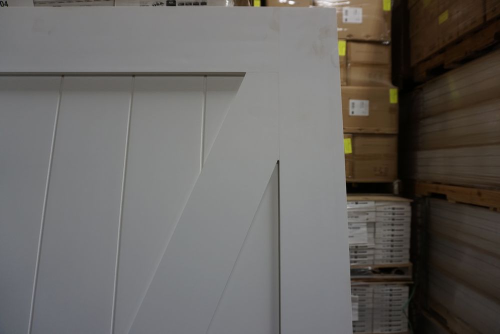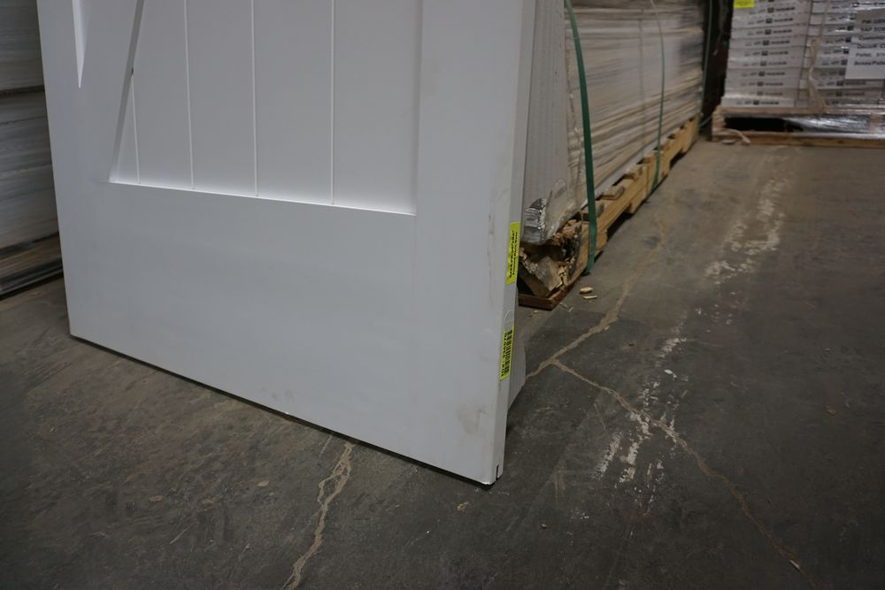 Interior, Primed Barn Door, 36"x84" Z Panel *See Description*. Has a Kerf, Barn Door Hardware is not included. Grade: 1st Quality *Please pay attention to photos, Door has slight fork damage.* *Any manufacturer warranties are NOT VALID with any purchase at our Auctions unless stated otherwise.. Weight: X. Sold by: Door. Sold as: Quantity x Price.