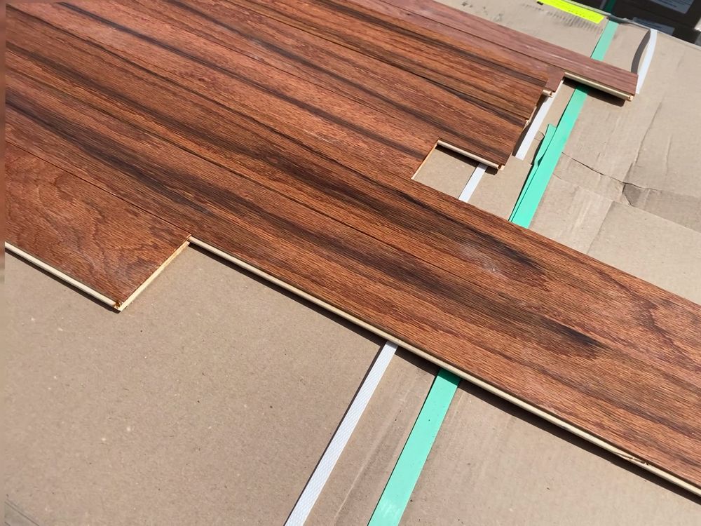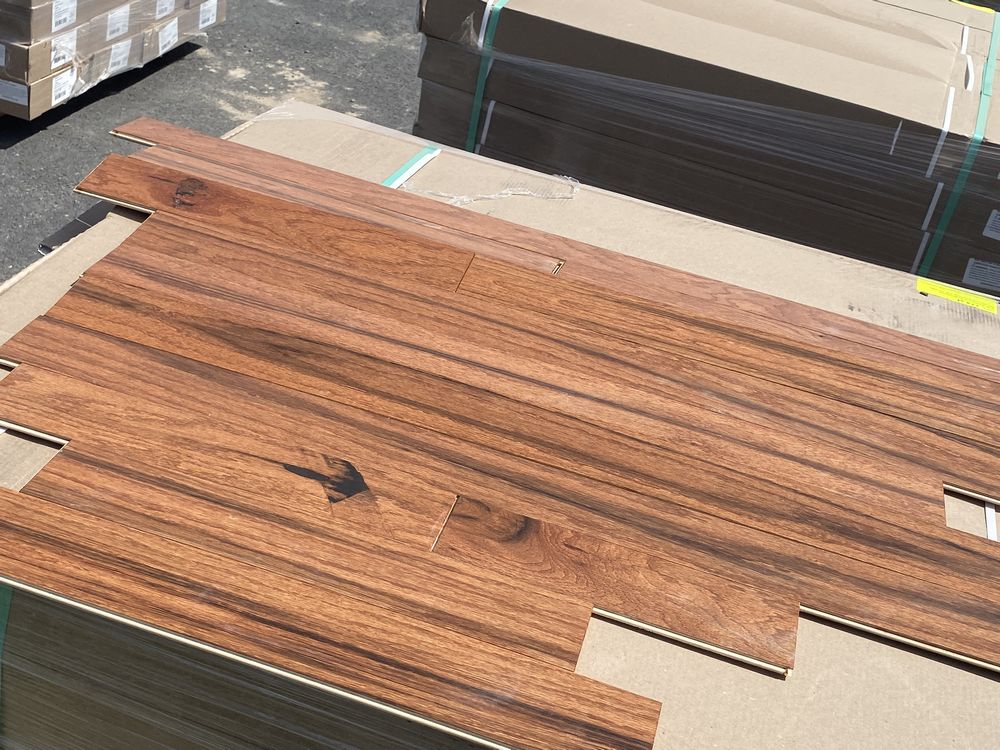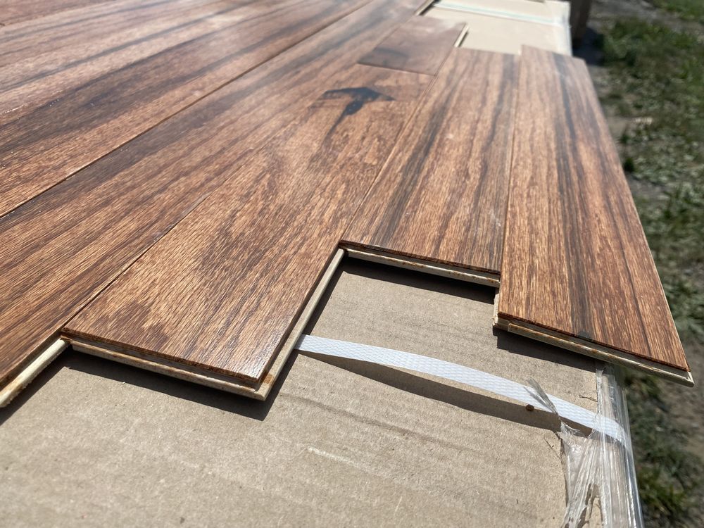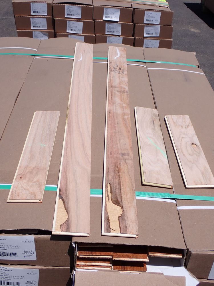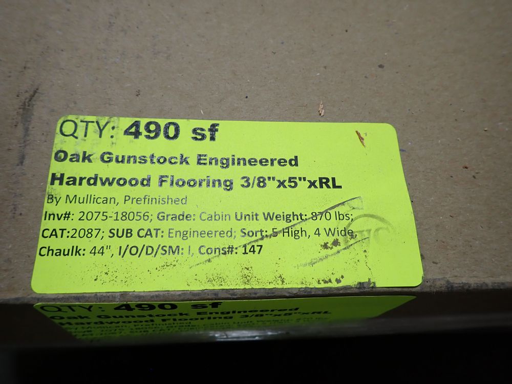 Oak Gunstock Engineered Hardwood Flooring 3/8" x 5" x RL. 20 Boxes, 24.5 SF Per Box, By: Mullican, Prefinshed, Grade: Cabin. Chalk marks are from manufacturer and can be wiped off. Cabin/Utility/Tavern Grade: This flooring product will have varying wood characteristics and colors to include streaks, deeper kn *Any manufacturer warranties are NOT VALID with any purchase at our Auctions unless stated otherwise.. Weight: 870. Sold by: Square Foot. Sold as: Quantity x Price.