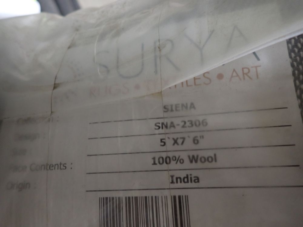 Area Rug 5' x 7' 6". Grade: 1st Quality, Design: SNA-2306 *Any manufacturer warranties are NOT VALID with any purchase at our Auctions unless stated otherwise.. Weight: X. Sold by: Piece. Sold as: Quantity x Price.