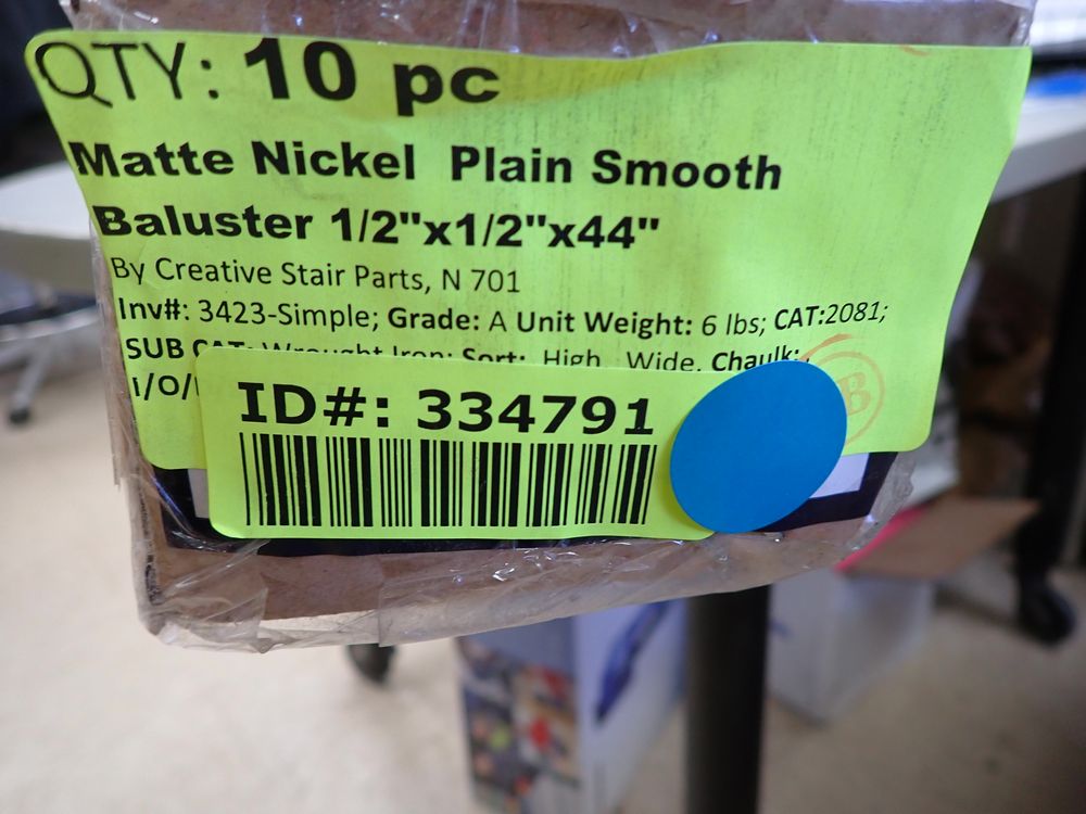 Matte Nickel Plain Smooth Baluster 1/2"x1/2"x44". By Creative Stair Parts, N 701. Grade: A *Any manufacturer warranties are NOT VALID with any purchase at our Auctions unless stated otherwise.. Weight: 6 lbs.. Sold by: Piece. Sold as: Quantity x Price.