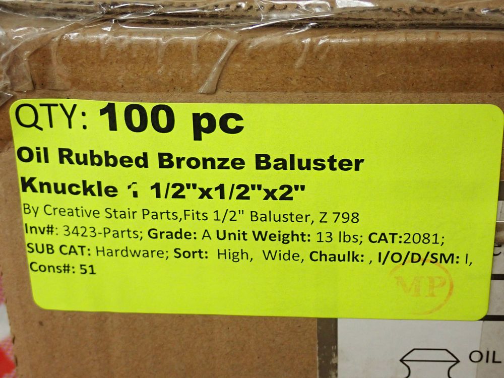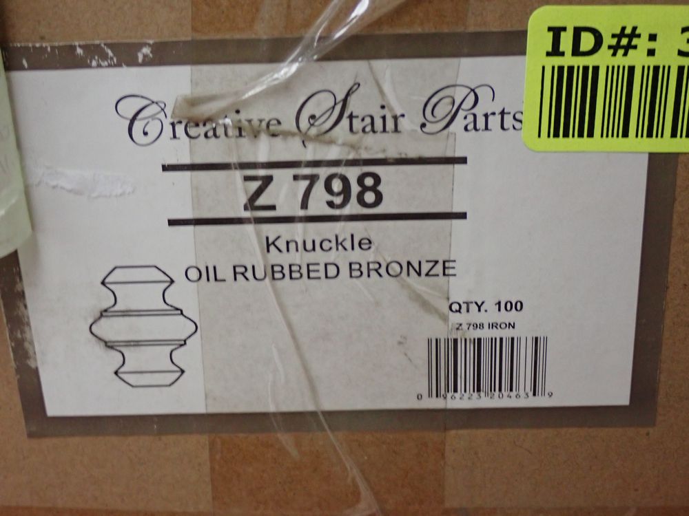 Oil Rubbed Bronze Baluster Knuckle 1 1/2" x 1/2" x 2". By Creative Stair Parts, Fits 1/2" Baluster, Z 798. Grade: A *Any manufacturer warranties are NOT VALID with any purchase at our Auctions unless stated otherwise.. Weight: 2 lbs. Sold by: Piece. Sold as: Quantity x Price.