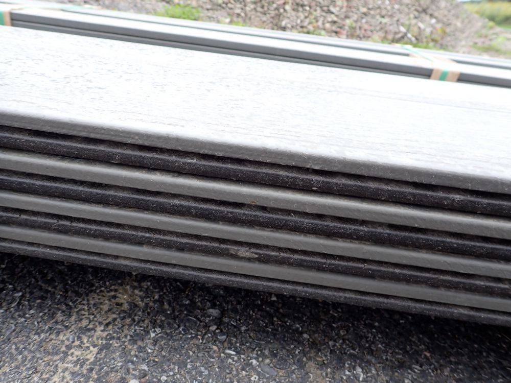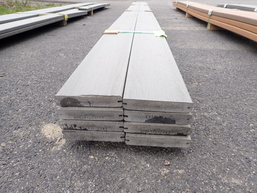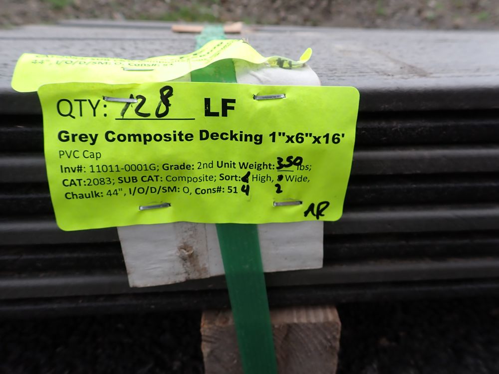 Grey Composite Decking 1" x 6" x 16'. PVC Cap. Square End. Grooved on both sides. Grade: 2nd. 8 boards. *Any manufacturer warranties are NOT VALID with any purchase at our Auctions unless stated otherwise.. Weight: 350. Sold by: Linear Foot. Sold as: Quantity x Price.
