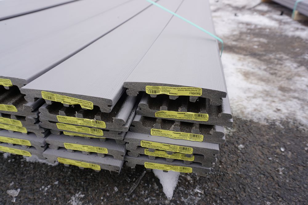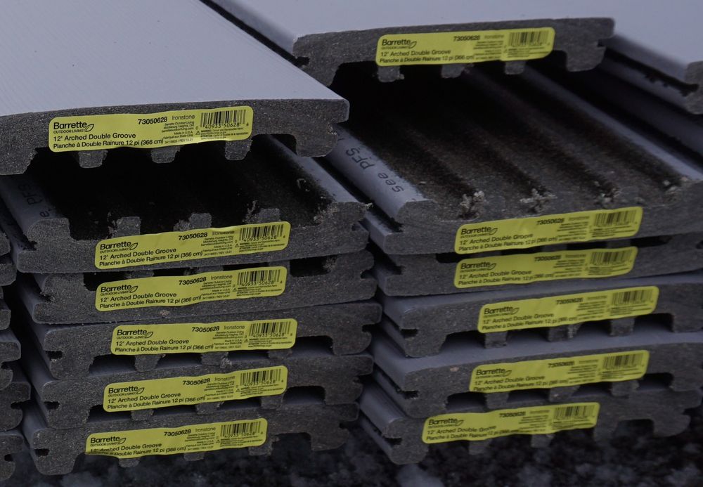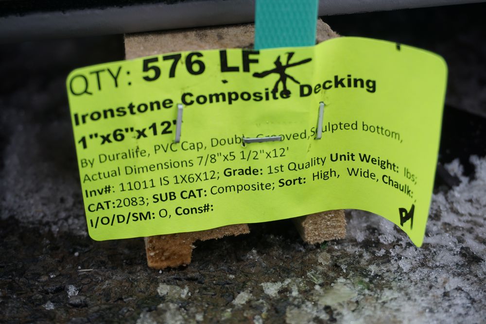 Irontone Composition Decking 1"x 6" x 12'. By Duralife, PVC Cap, Double Grooved, Scalloped Bottom, Actual Dimensions 7/8" x 5 1/2" x 16', 48 Pieces, Grade: 1st Quality *Any manufacturer warranties are NOT VALID with any purchase at our Auctions unless stated otherwise.. Weight: x. Sold by: linear Foor. Sold as: Quantity x Price.