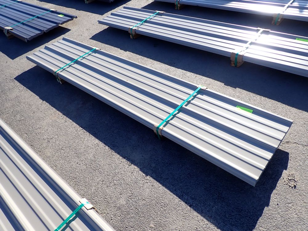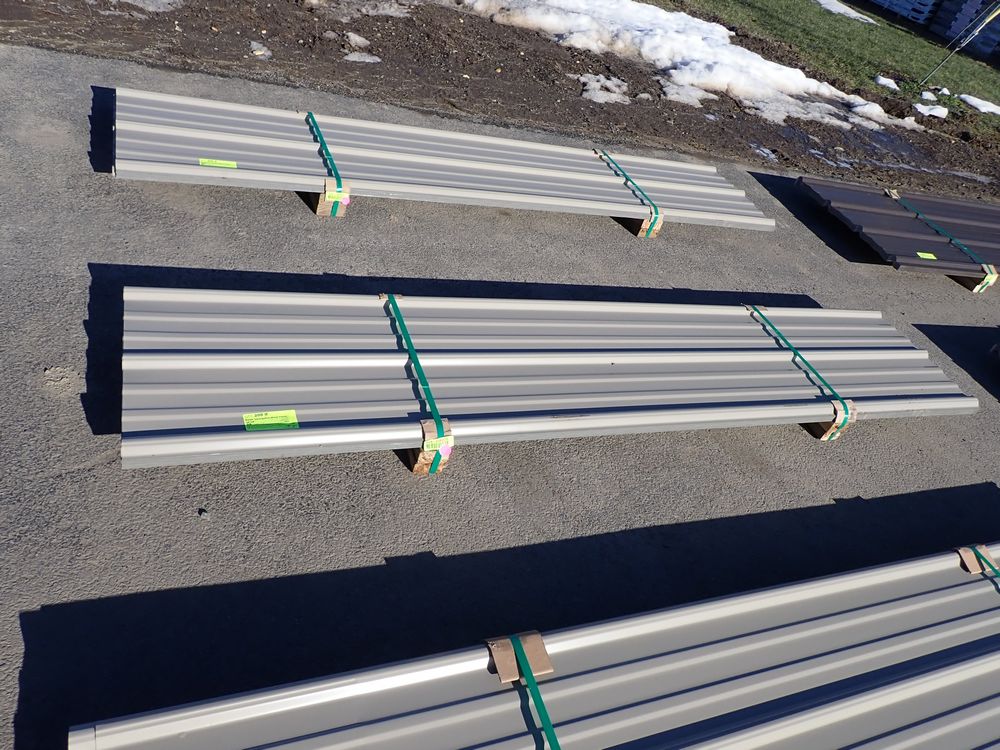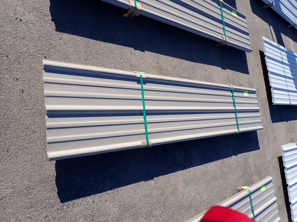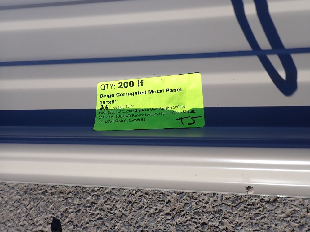Beige Corrugated Metal 18" x 8'. 26 Gauge, 25 pc. Grade: B. *Any manufacturer warranties are NOT VALID with any purchase at our Auctions unless stated otherwise.. Weight: 580. Sold by: Linear Foot. Sold as: Quantity x Price.