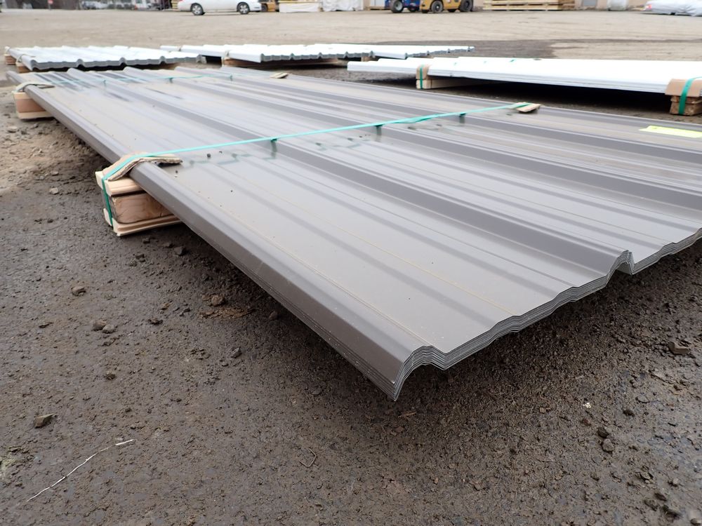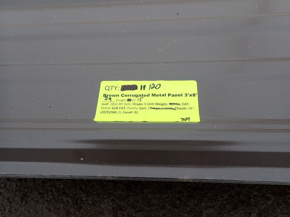 Brown Corrugated Metal Panel 3'x8'. 29 Guage, 15 Piece. Grade: B *Any manufacturer warranties are NOT VALID with any purchase at our Auctions unless stated otherwise.. Weight: X. Sold by: Linear Foot. Sold as: Quantity x Price.