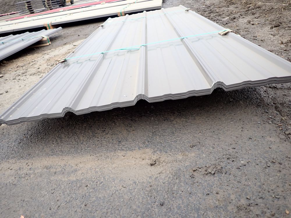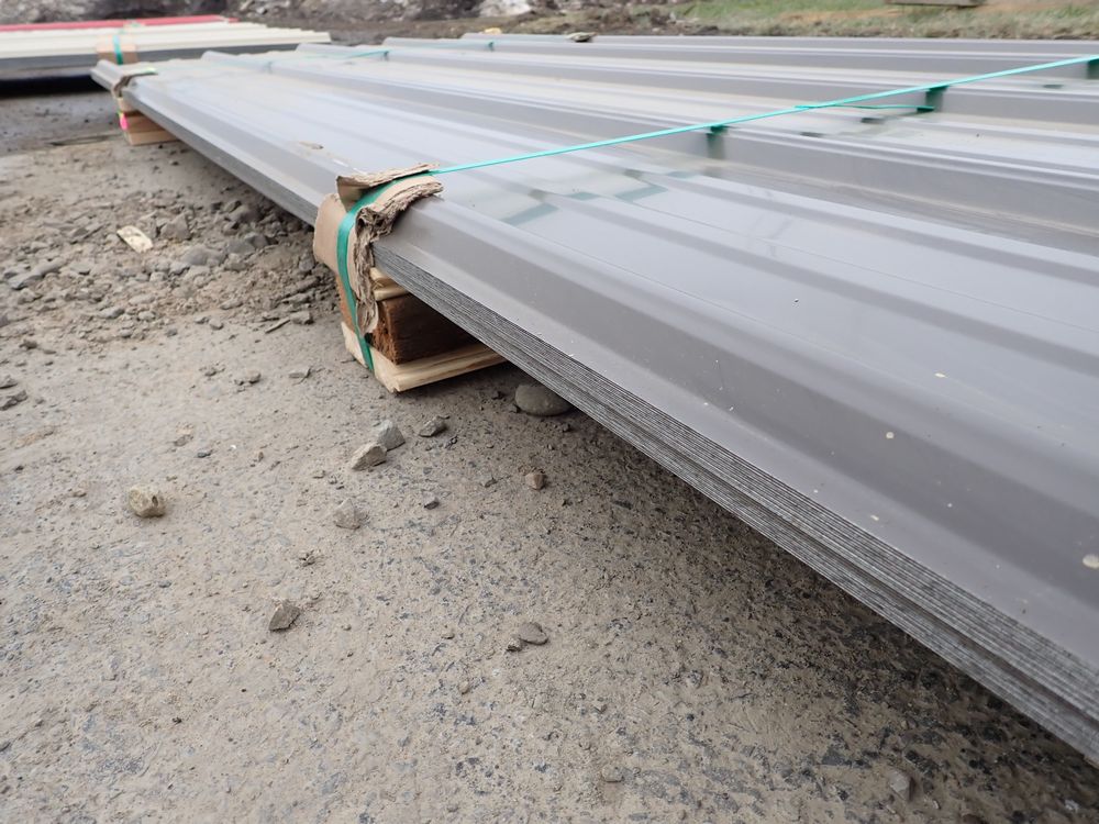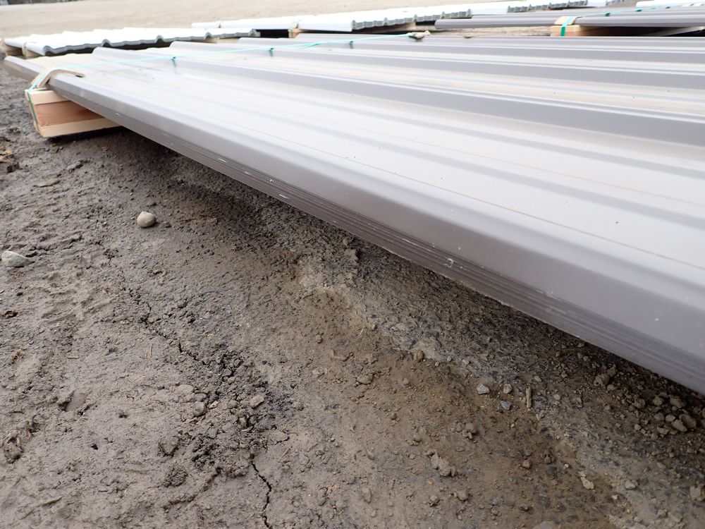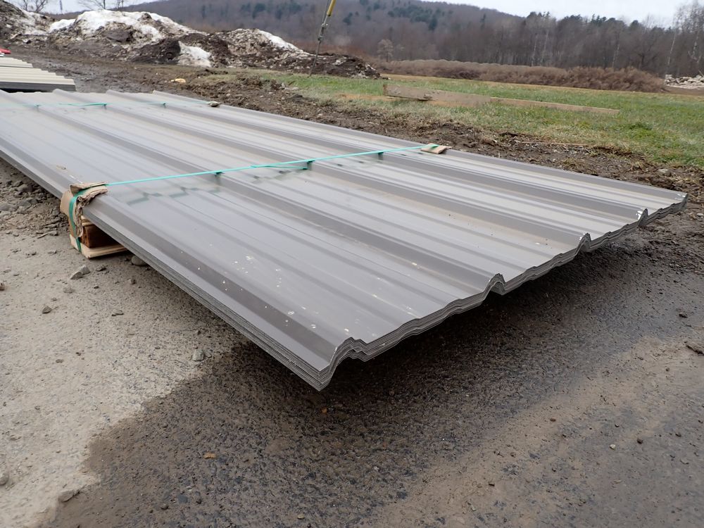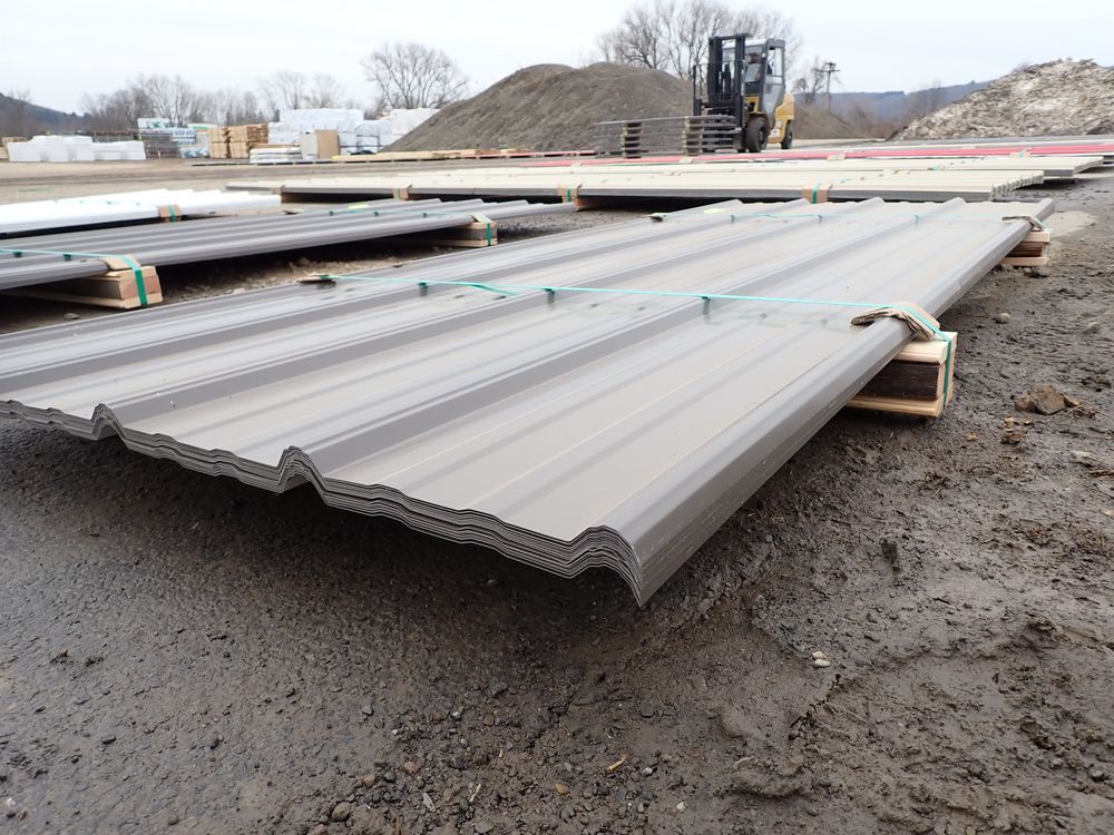 Brown Corrugated Metal Panel 3'x8'. 29 Guage, 25 Piece. Grade: B *Any manufacturer warranties are NOT VALID with any purchase at our Auctions unless stated otherwise.. Weight: 420 lbs.. Sold by: Linear Foot. Sold as: Quantity x Price.