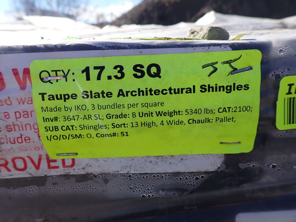 17.3 Square Of Tuape Slate Architectural Shingles. Made By: IKO, 3 Bundles Per Square. Grade: B *Any manufacturer warranties are NOT VALID with any purchase at our Auctions unless stated otherwise.. Weight: 2340. Sold by: Square. Sold as: Quantity x Price.