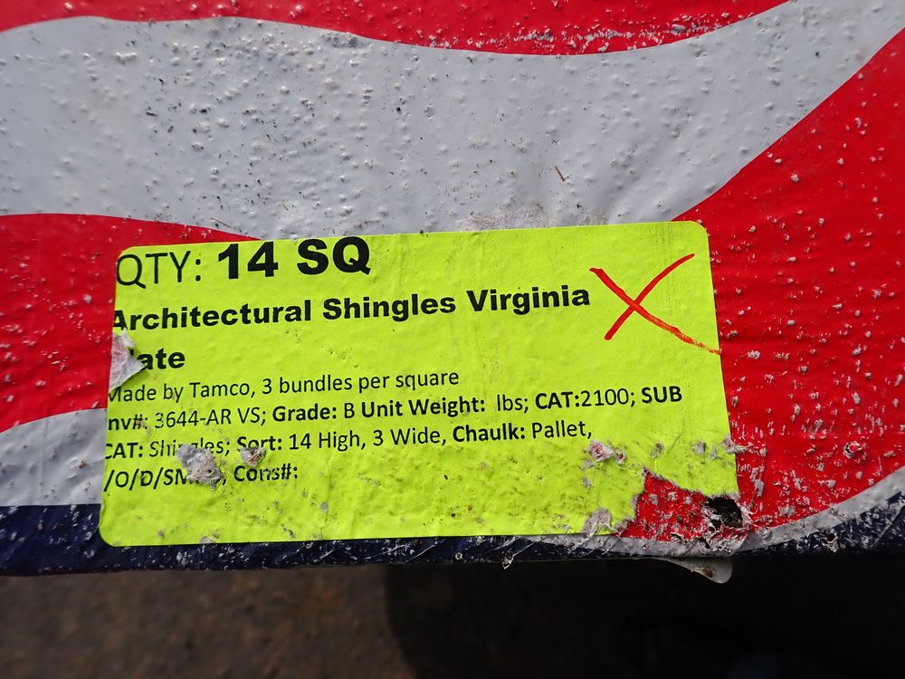 Architectural Shingles Virginia Slate, 14 SQ. Made By: Tamco, 3 Bundles Per Square, Grade: B *Any manufacturer warranties are NOT VALID with any purchase at our Auctions unless stated otherwise.. Weight: X. Sold by: Square. Sold as: Quantity x Price.
