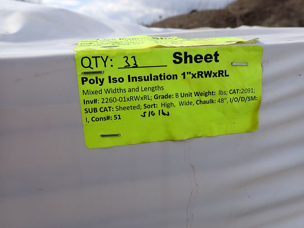 Poly Iso Insulation 1" x RW x RL. Mixed Widths, and Lengths. Grade: B. *Any manufacturer warranties are NOT VALID with any purchase at our Auctions unless stated otherwise.. Weight: 510. Sold by: Sheet. Sold as: Quantity x Price.