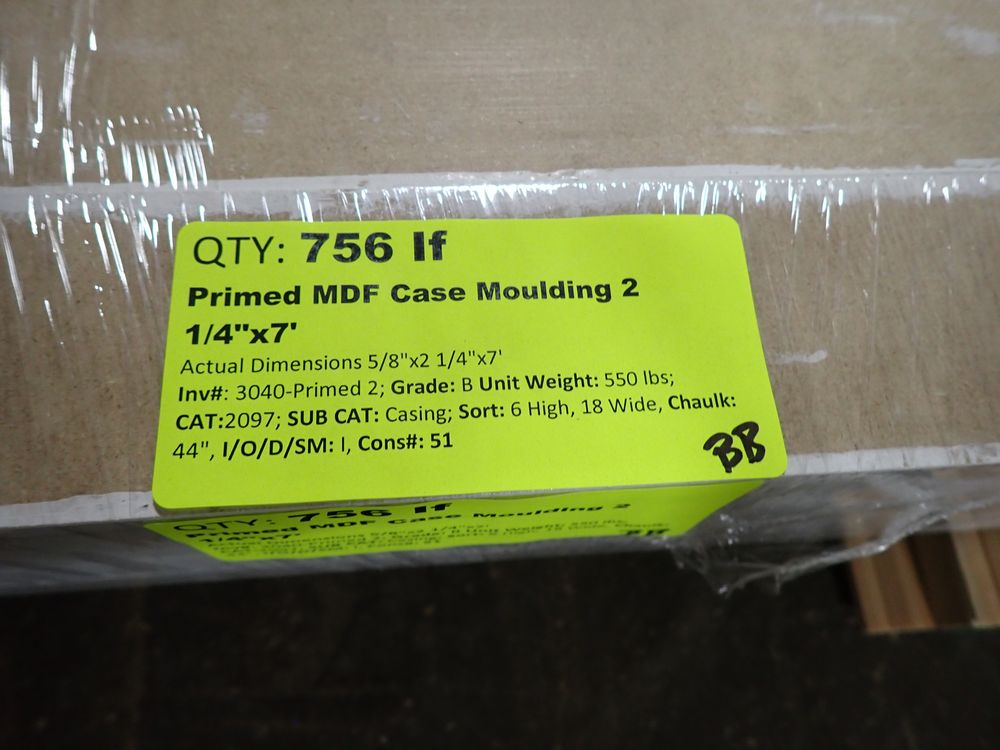 Primed MDF Casing Molding 2 1/4" x 7'. 108 Pcs, Grade: B, Actual Dimensions: 5/8" x 2 1/4" x 7' *Any manufacturer warranties are NOT VALID with any purchase at our Auctions unless stated otherwise.. Weight: 550. Sold by: Linear Foot. Sold as: Quantity x Price.