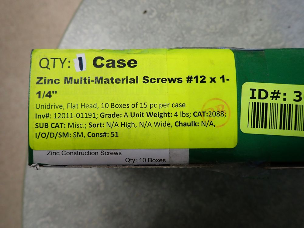 Zinc Multi-Material Screws #12 x 1- 1/4". Unidrive, Flat Head, 10 Boxes of 15 Pieces Per Case. Grade: A *Any manufacturer warranties are NOT VALID with any purchase at our Auctions unless stated otherwise.. Weight: 2. Sold by: Case . Sold as: Quantity x Price.