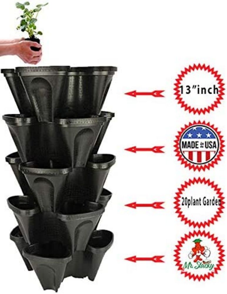 Mr. Stacky 5-Tier Vertical Gardening Indoor/Outdoor Stacking Garden Pots. The stackable planter is great for growing strawberries, herbs, succulents, flowers, and more in a small amount of space! The planter design has water reservoirs on each layer. Once the reservoirs are filled, the water spills over to the next layer eventually making it to the bottom tray. With this planter you will not need to worry about over-watering your plants. Truly Gardening Made Easy! Can also be used for hydroponics too. The contents of each box include: (5) Stackable Planters Plus (1) Bottom Saucer; 12.5"x12.5"x 26"; Total Soil Volume 28 Quarts. Grade: NEW *Any manufacturer warranties are NOT VALID with any purchase at our Auctions unless stated otherwise.. Weight: x. Sold by: Box. Sold as: Quantity x Price.