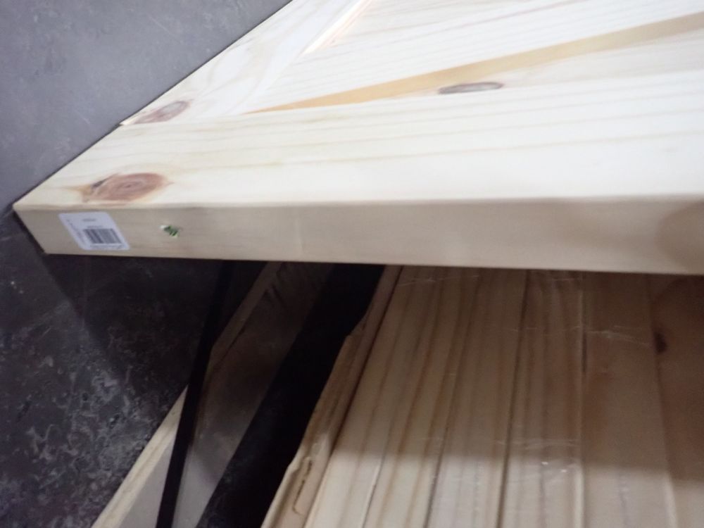 Interior Knotty Pine Door 37"x84". X Panel. Grade: A *Any manufacturer warranties are NOT VALID with any purchase at our Auctions unless stated otherwise.. Weight: X. Sold by: Door. Sold as: Quantity x Price.