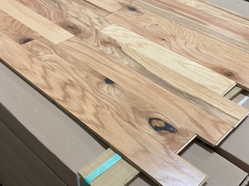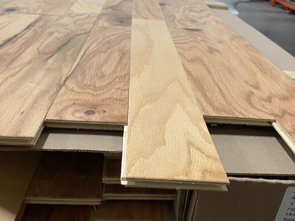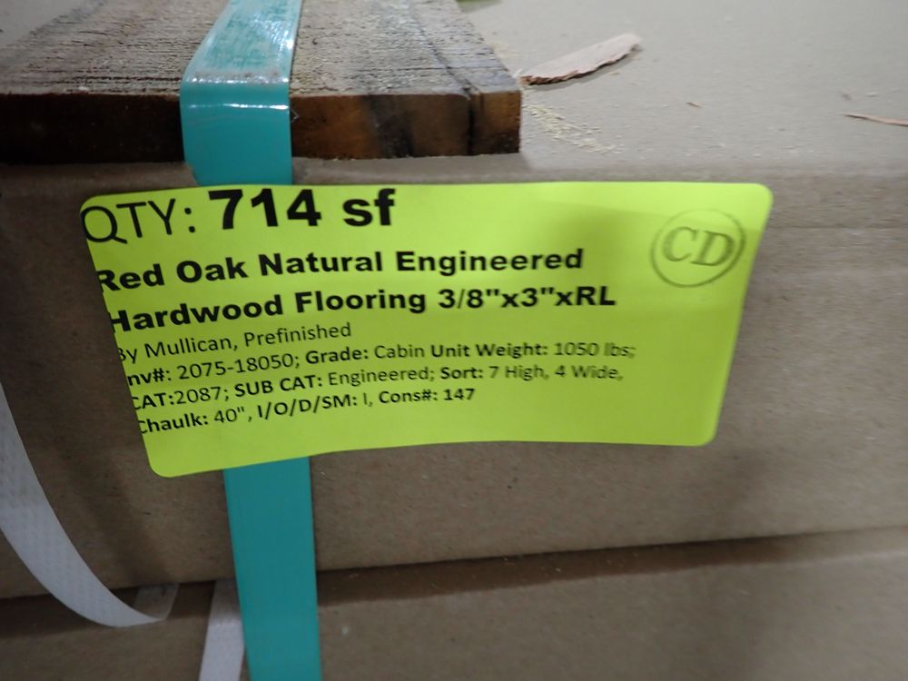 Red Oak Natural Engineered Hardwood Flooring 3/8" x 3" x RL. 28 Boxes, 25.5 SF Per Box, By: Mullican, Prefinished, Grade: Cabin. Chalk marks are from manufacturer and can be wiped off. Cabin/Utility/Tavern Grade: This flooring product will have varying wood characteristics and colors to include streaks, deeper k *Any manufacturer warranties are NOT VALID with any purchase at our Auctions unless stated otherwise.. Weight: 1050. Sold by: Square Foot. Sold as: Quantity x Price.