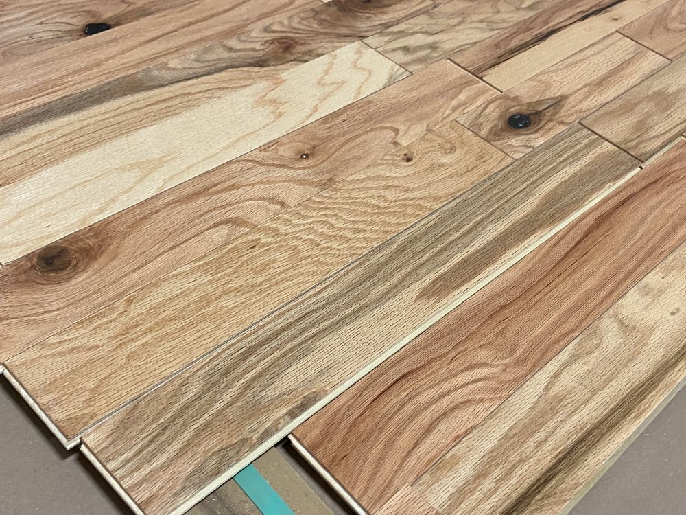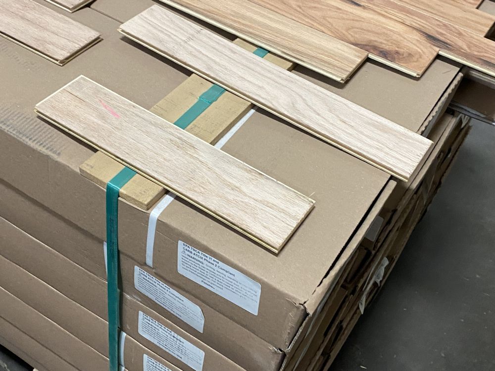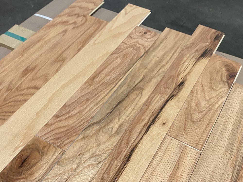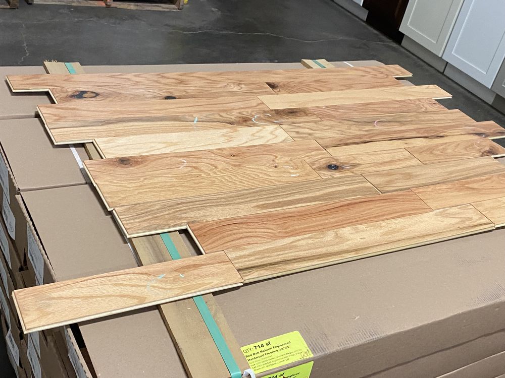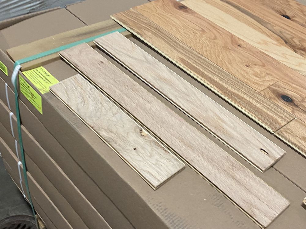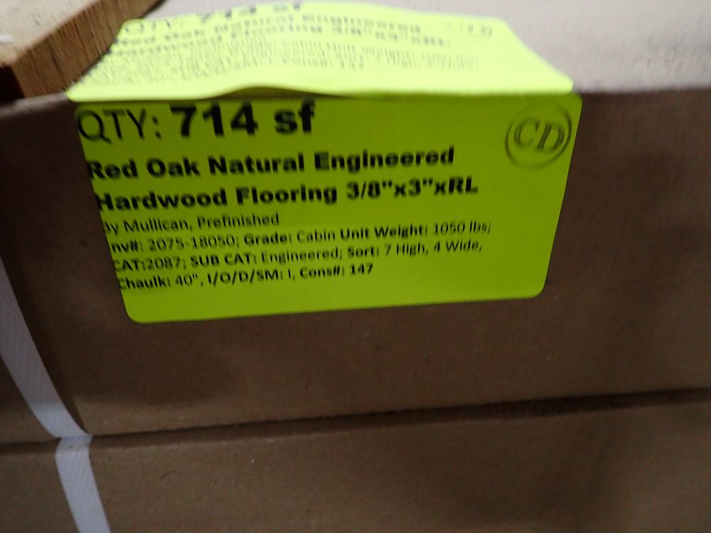 Red Oak Natural Engineered Hardwood Flooring 3/8" x 3" x RL. 28 Boxes, 25.5 SF Per Box, By: Mullican, Prefinished, Grade: Cabin. Chalk marks are from manufacturer and can be wiped off. Cabin/Utility/Tavern Grade: This flooring product will have varying wood characteristics and colors to include streaks, deeper knots and burls, small splits, wormholes, and even marks during the milling process such as machine burns. It may also have a large variance in color and grain patterns. The boards are typically 10” to 30” with an average board length of 16”. It is usually packaged in mini bundles of 18-20 sf per bundle. It is ok for 5” wide to be heavier in shorter pieces. Cabin grade is a stable, installable product but please account up to 10%-20% waste. *Any manufacturer warranties are NOT VALID with any purchase at our Auctions unless stated otherwise.. Weight: 1050. Sold by: Square Foot. Sold as: Quantity x Price.