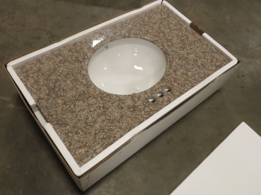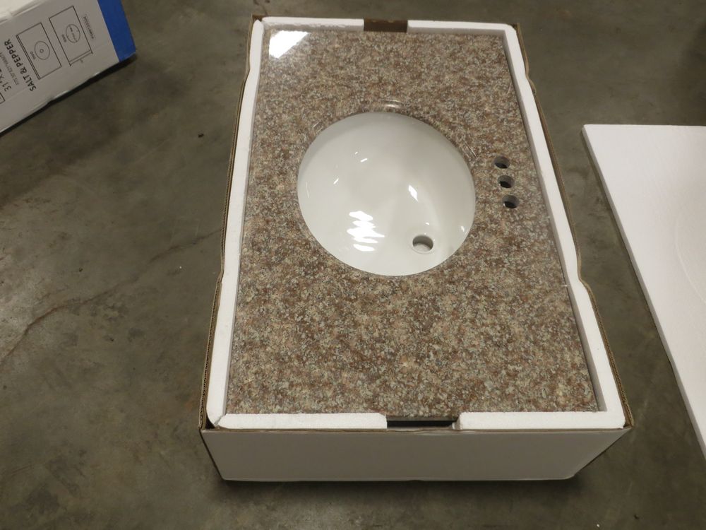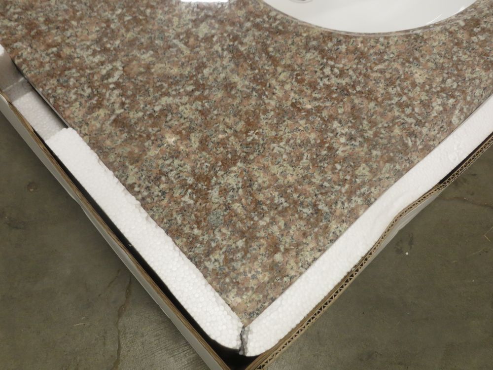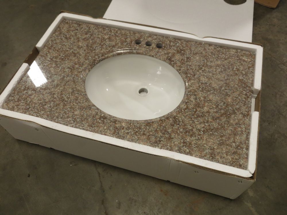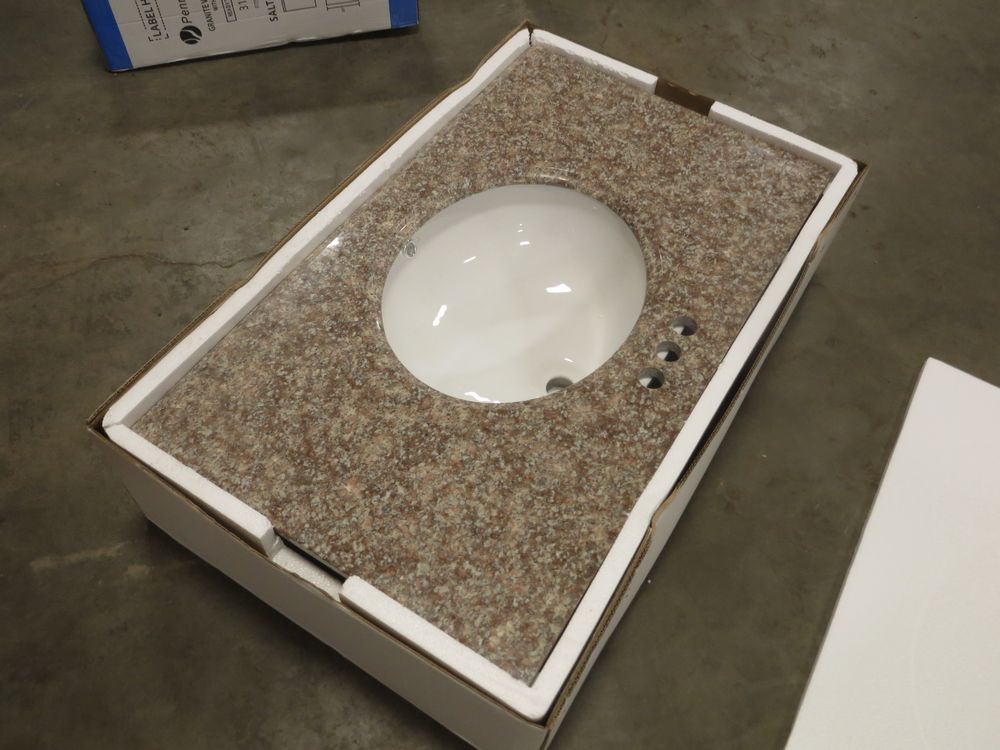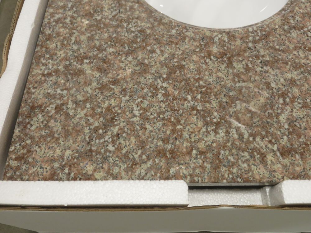 Peach Red Granite Vanity Top 37" x 22". By: Penncrafter, Single Bowl (17" x 14") Fits 36" x 21" Vanity. Grade: NEW *Any manufacturer warranties are NOT VALID with any purchase at our Auctions unless stated otherwise.. Weight: x. Sold by: Piece. Sold as: Quantity x Price.