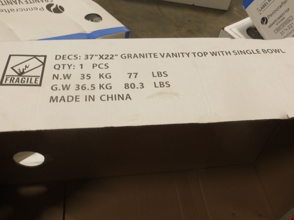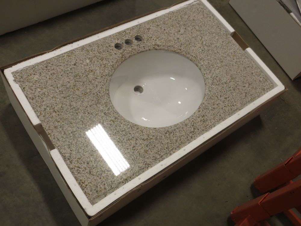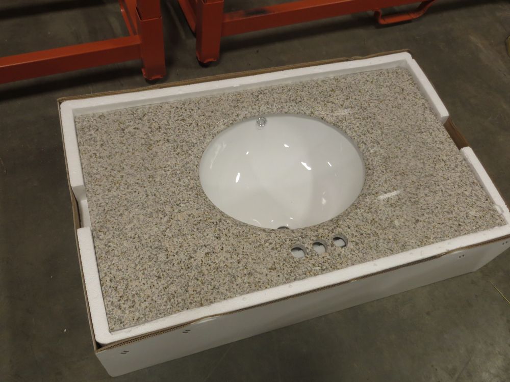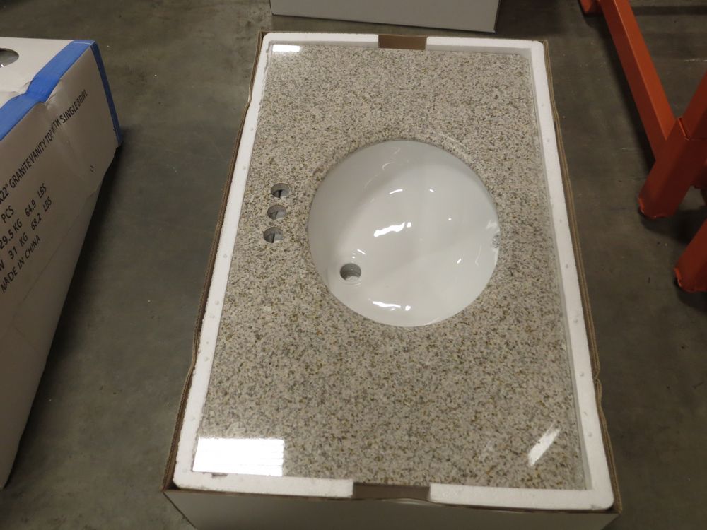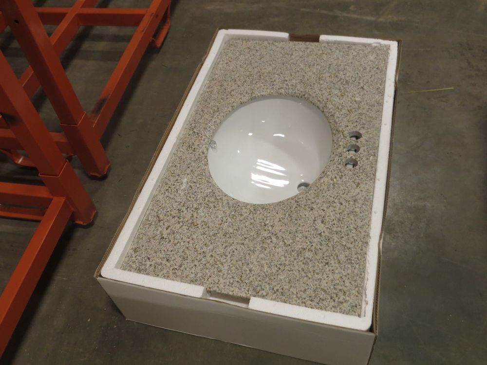 Golden Peach Granite Vanity Top 37" x 22". Penncrafter, with Bowl & Backsplash; Grade New *Any manufacturer warranties are NOT VALID with any purchase at our Auctions unless stated otherwise.. Weight: 80. Sold by: Piece. Sold as: Quantity x Price.