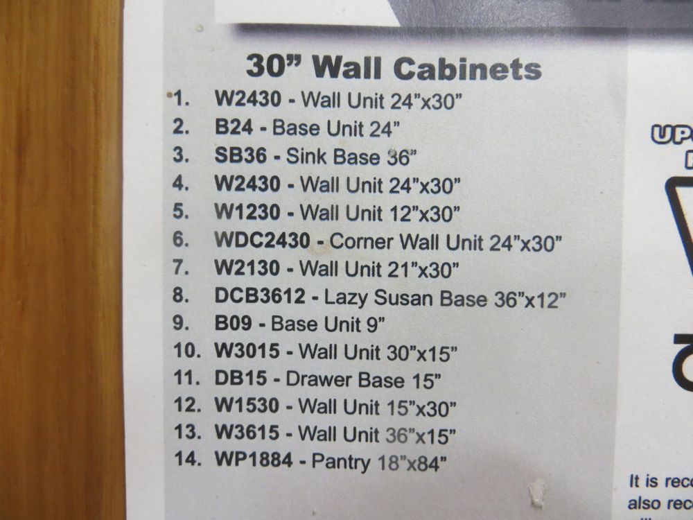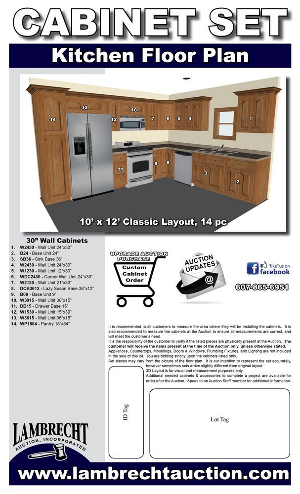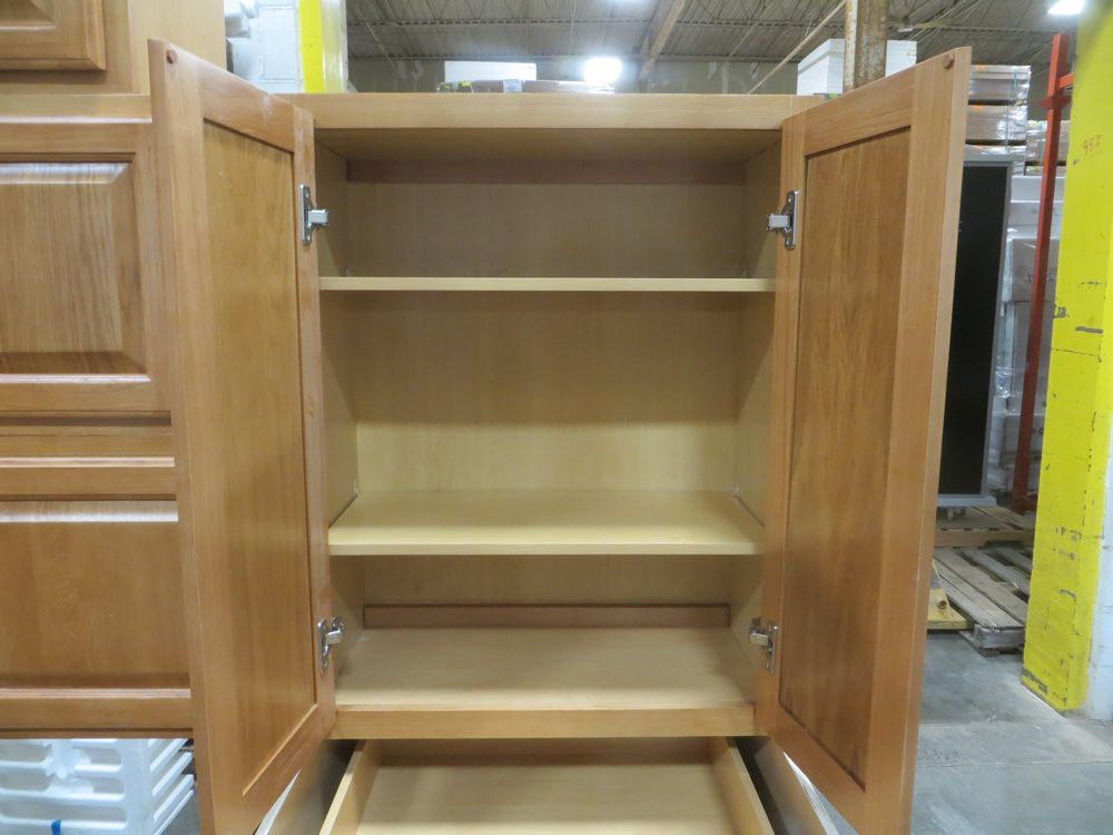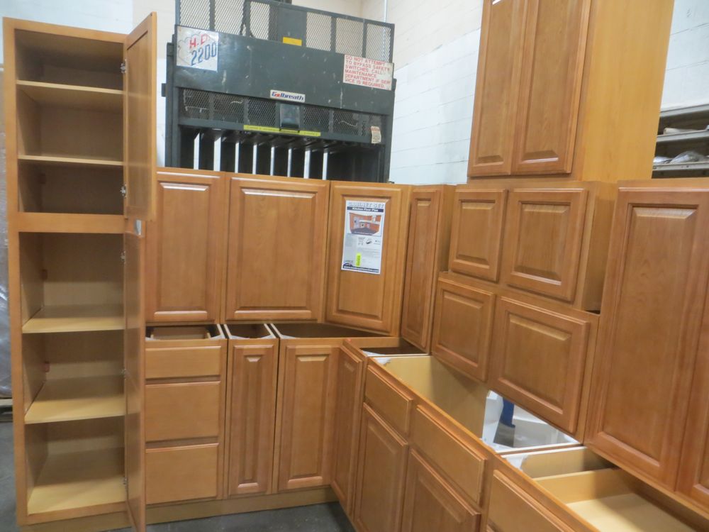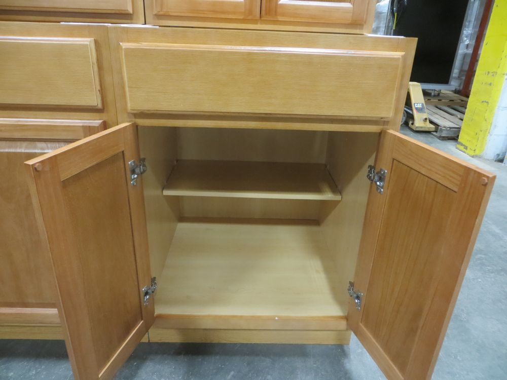 Regal Oak Kitchen Cabinet Set 10' x 12'. Classic Layout. 30" Walls. ASSEMBLY OPTION IS NOT AVAILABLE FOR THIS SET. By GHI, Additional pieces may be available for order to the high bidder. Additional cabinets ship boxed, ready to assemble. -All Wood Construction -3/4” Plywood with Veneer Oak Face Frame -Solid Oak Raised Panel Door with Veneer Center Panel -1/2” Plywood Box Construction -5/8” Plywood Shelf -Side Mount Glides and Plywood Drawer Box -Concealed Hinges -Additional Wall Cabinets Available in the Following Sizes; 30”, 36”, and 42”; if you would like a different size that what this cabinet is listed as please call our office at 607-865-6951 for a quote. Enclosed in each cabinet set will be a Build Sheet which lists the individual cabinets in each set. As the cabinets are palletized each cabinet will be checked off and signed by our staff member to ensure that the set is complete at the time of pick-up. Please keep this Build Sheet on hand because it will be required if there is an issue with your cabinet set. Cabinet issues will not be addressed without this build sheet. *Any manufacturer warranties are NOT VALID with any purchase at our Auctions unless stated otherwise.. Weight: X. Sold by: Set. Sold as: Quantity x Price.