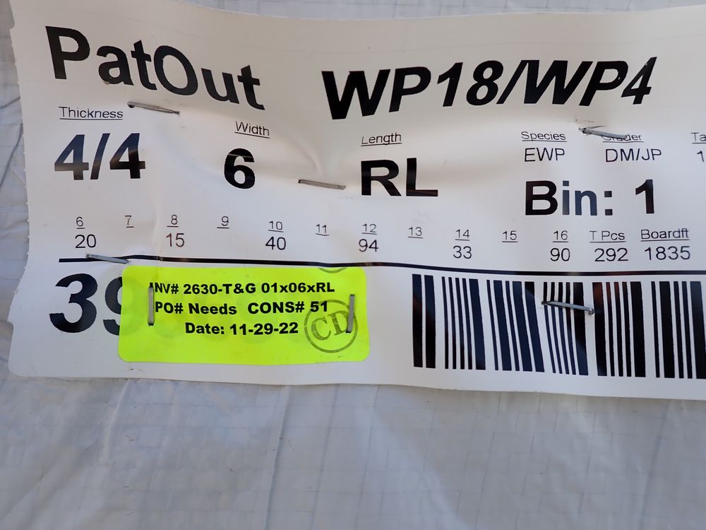 Pine T&G Paneling 1" x 6" x RL. 1835 bf. 20-6', 15-8', 40-10', 94-12', 33-14', 90-16'. Face Side Has All Edge And Center Bead, Back Of Board Profile Varies. *Any manufacturer warranties are NOT VALID with any purchase at our Auctions unless stated otherwise.. Weight: x. Sold by: Board Feet. Sold as: Quantity x Price.