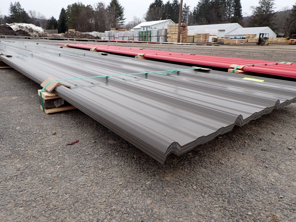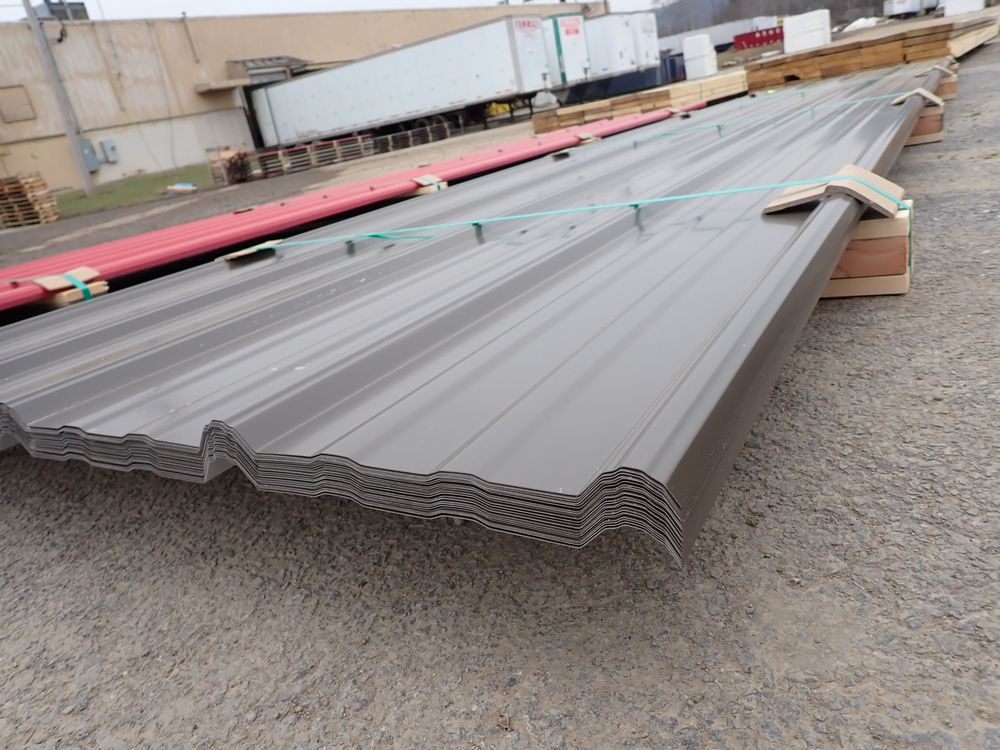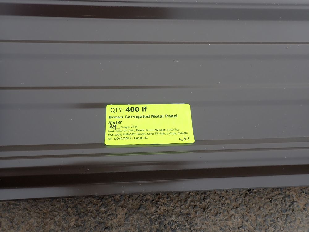 Brown Corrugated Metal Panel 3'x16'. 29 Gauge, 23 Piece. Grade: B *Any manufacturer warranties are NOT VALID with any purchase at our Auctions unless stated otherwise.. Weight: 1250 lbs.. Sold by: Linear Foot. Sold as: Quantity x Price.