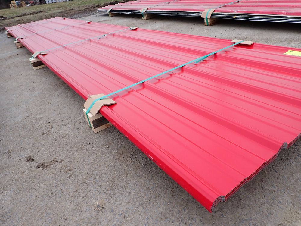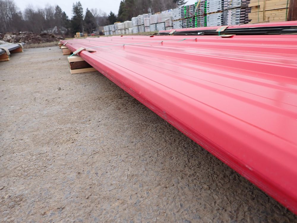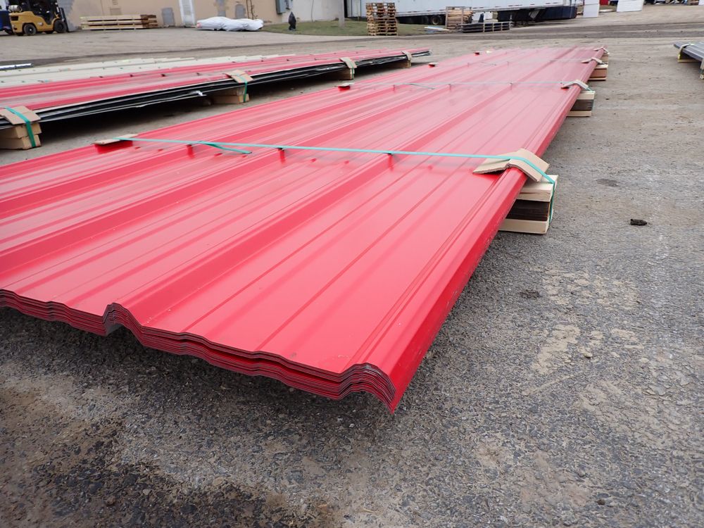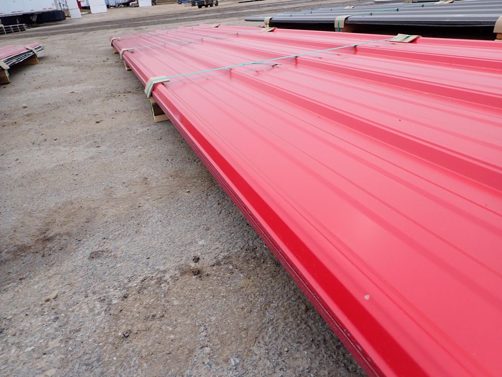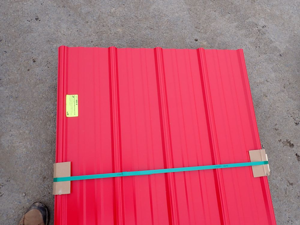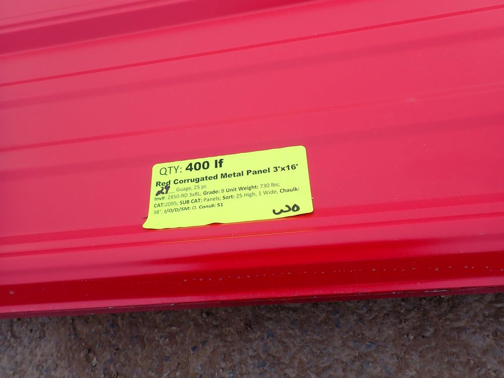 Red Corrugated Metal Panel 3'x16'. 29 Gauge, 17 Piece. Grade: B *Any manufacturer warranties are NOT VALID with any purchase at our Auctions unless stated otherwise.. Weight: 730 lbs.. Sold by: Linear Foot. Sold as: Quantity x Price.