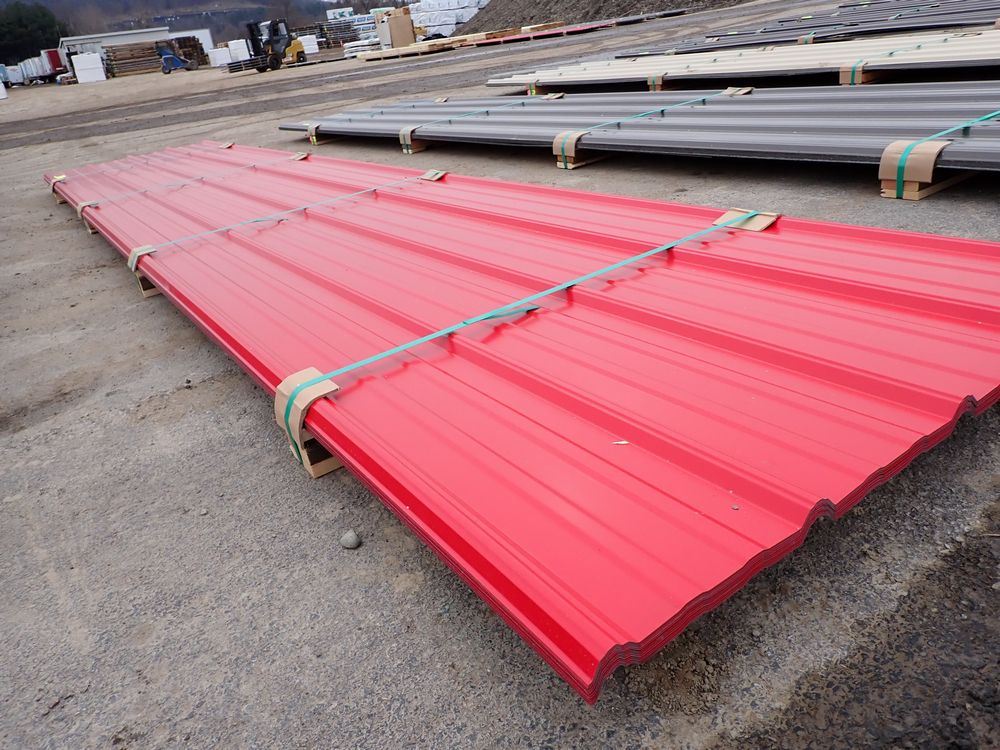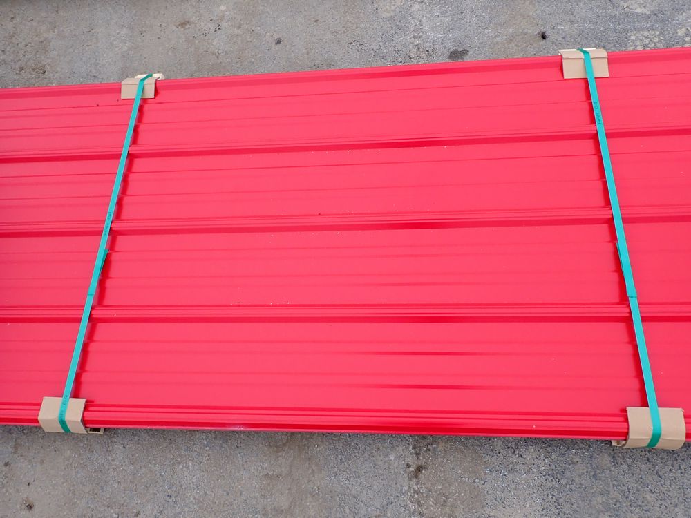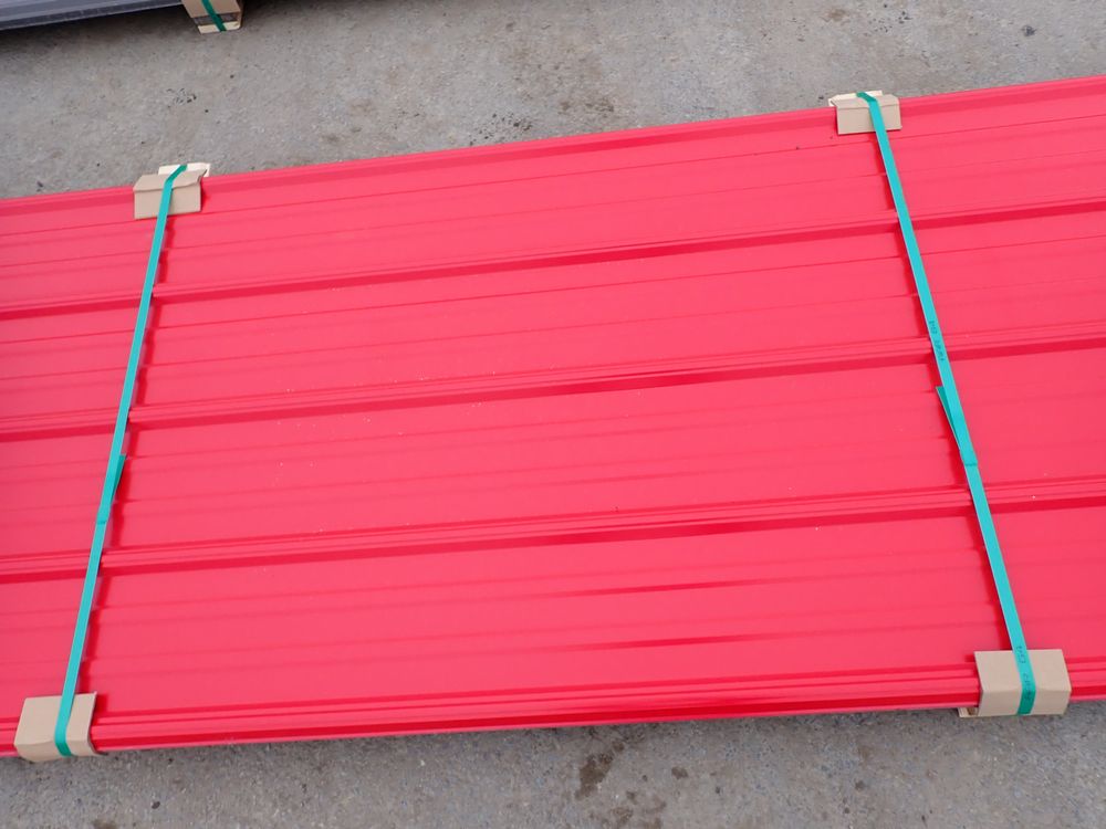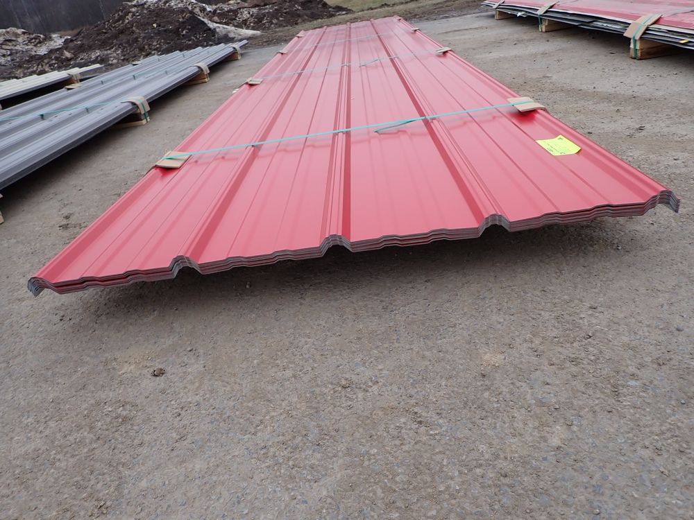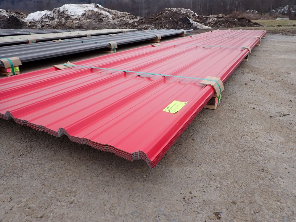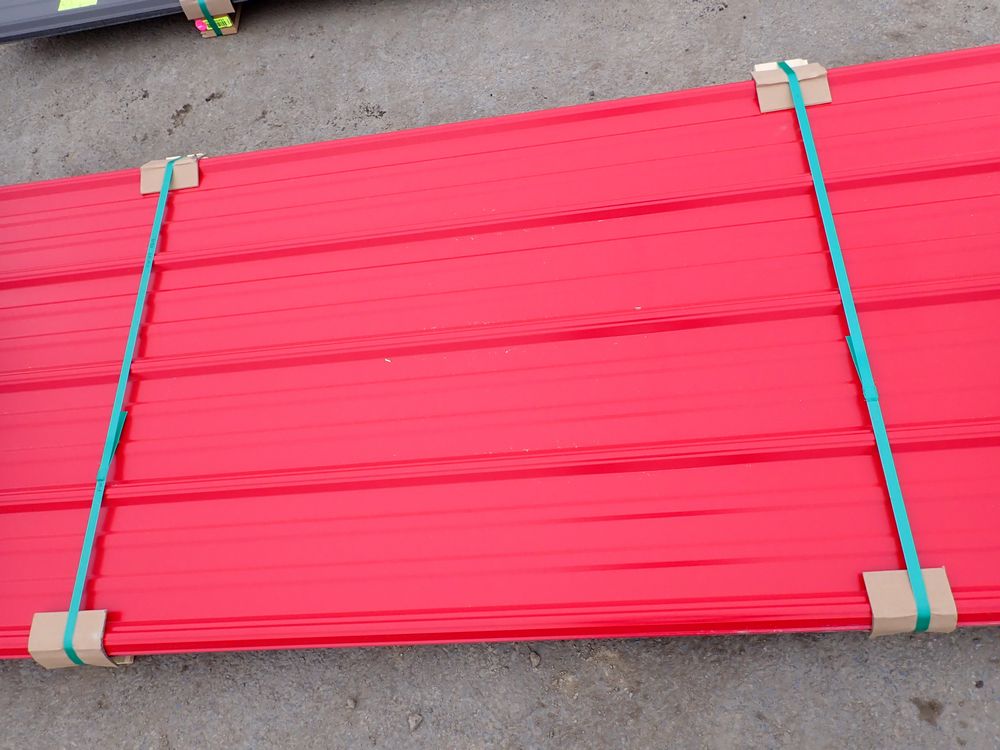Red Corrugated Metal Panel 3'x16'. 29 Gauge, 17 Piece. Grade: B *Any manufacturer warranties are NOT VALID with any purchase at our Auctions unless stated otherwise.. Weight: 730 lbs.. Sold by: Linear Foot. Sold as: Quantity x Price.