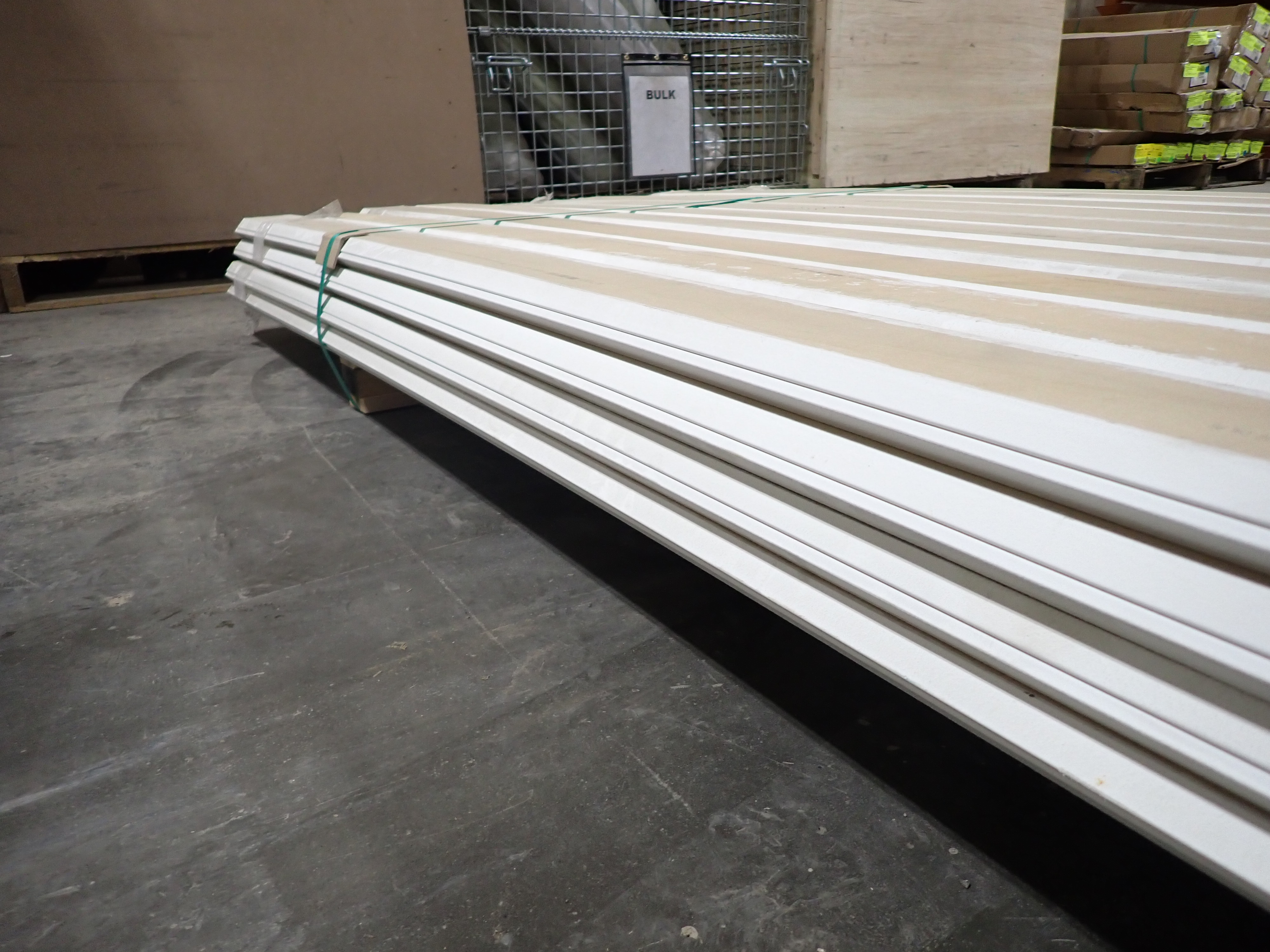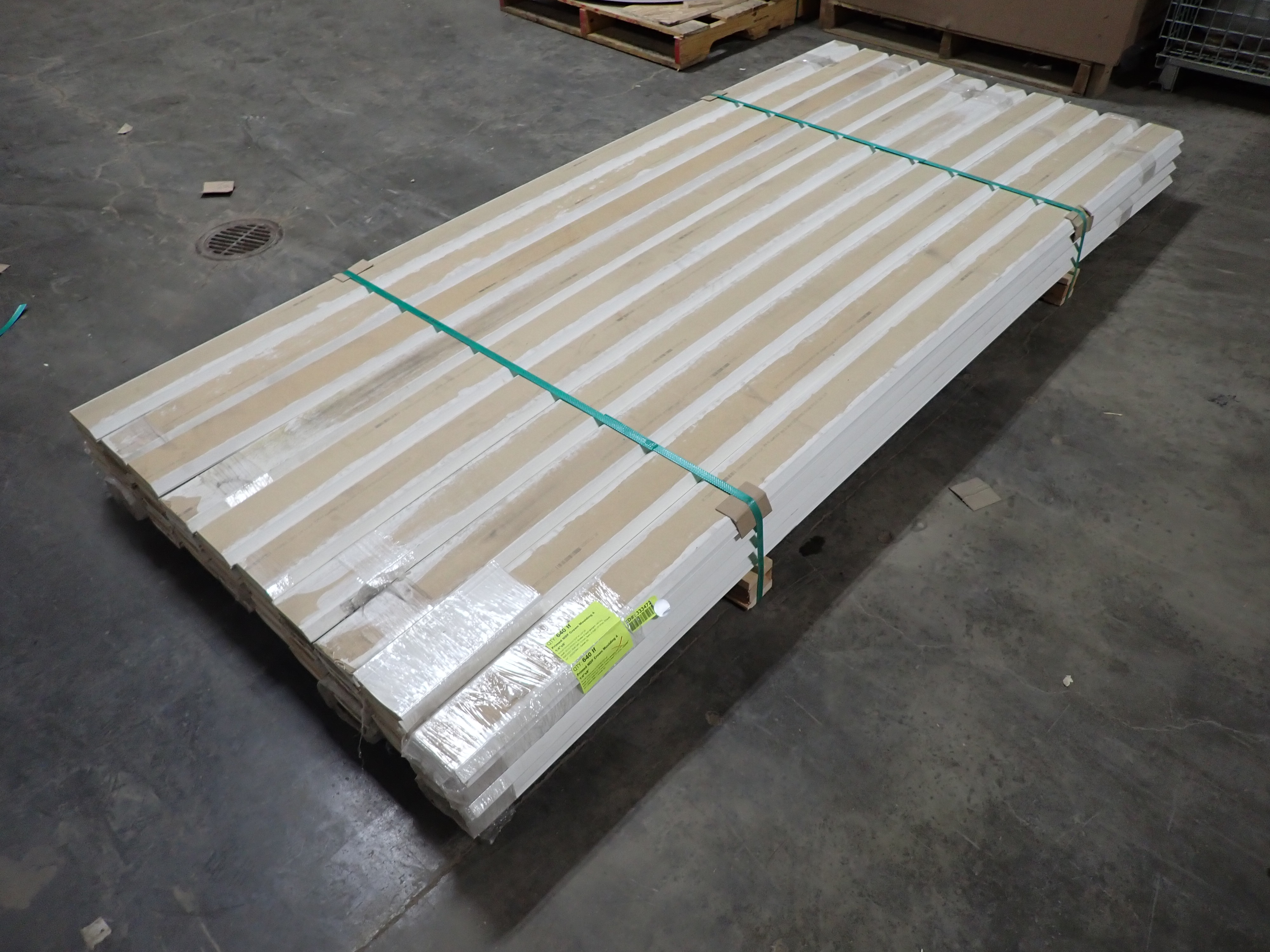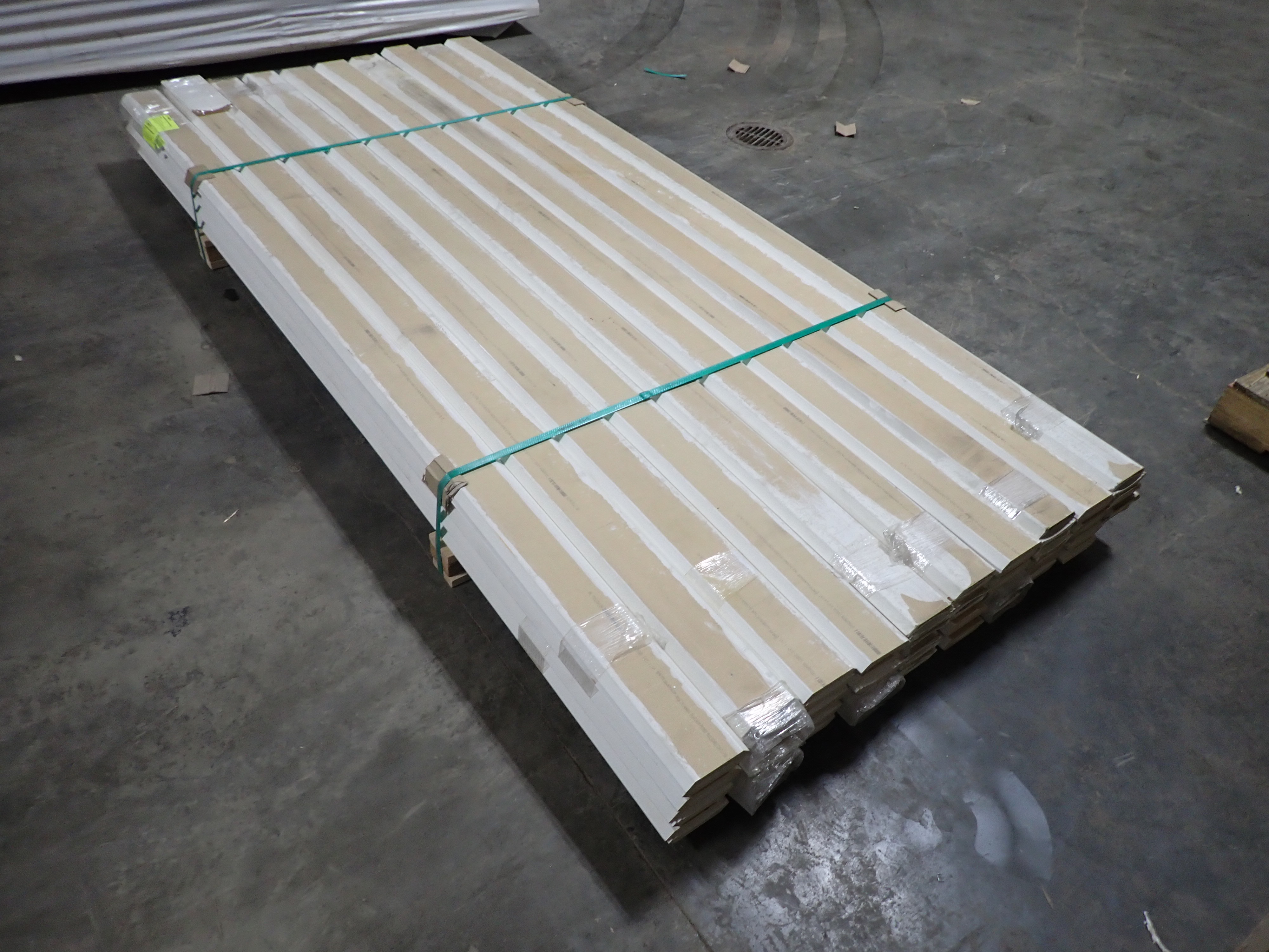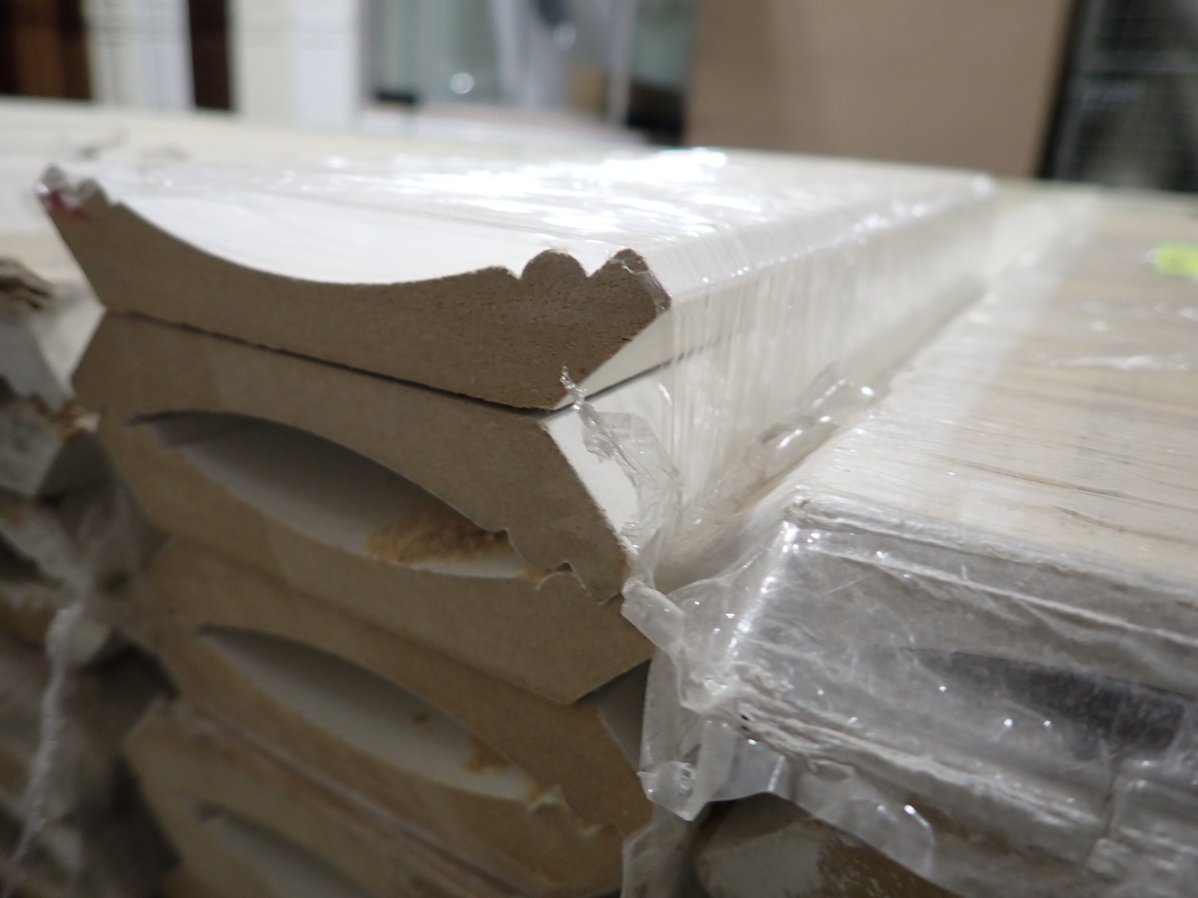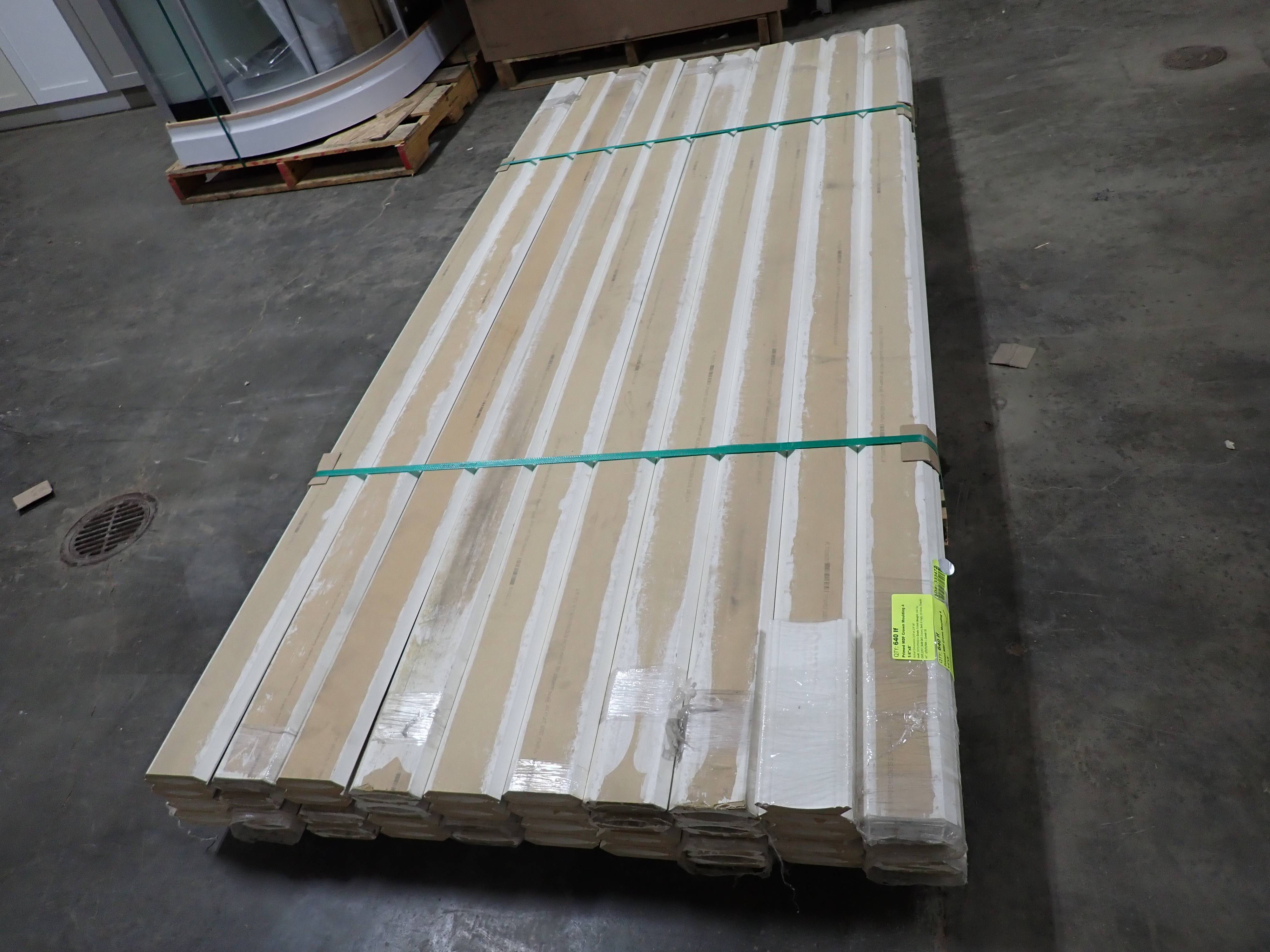 Primed MDF Crown Molding 4 1/4" x 8'. Actual Dimensions; 3/4" x 4 1/4", 8' *Any manufacturer warranties are NOT VALID with any purchase at our Auctions unless stated otherwise.. Weight: 540. Sold by: Linear Foot. Sold as: Quantity x Price.