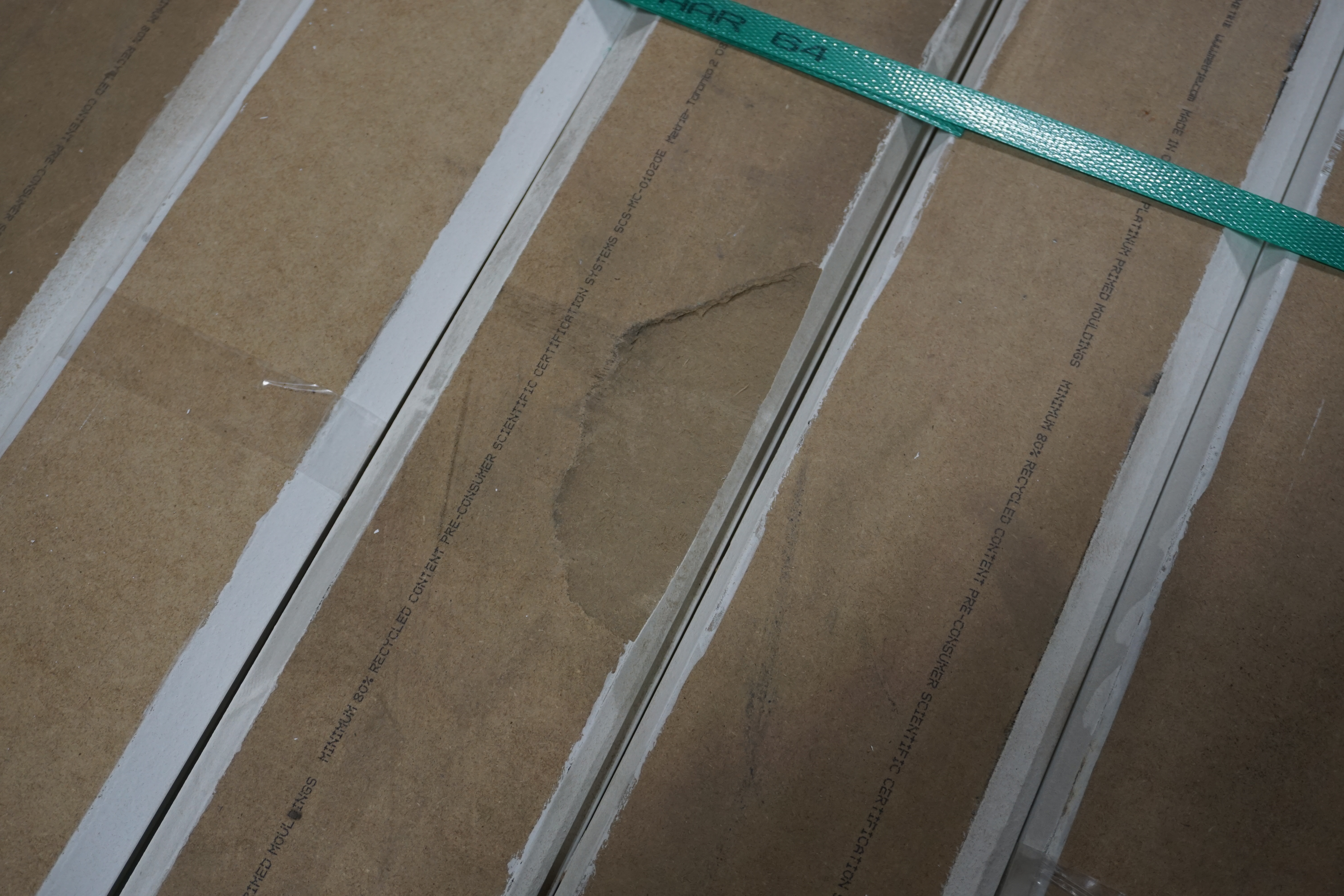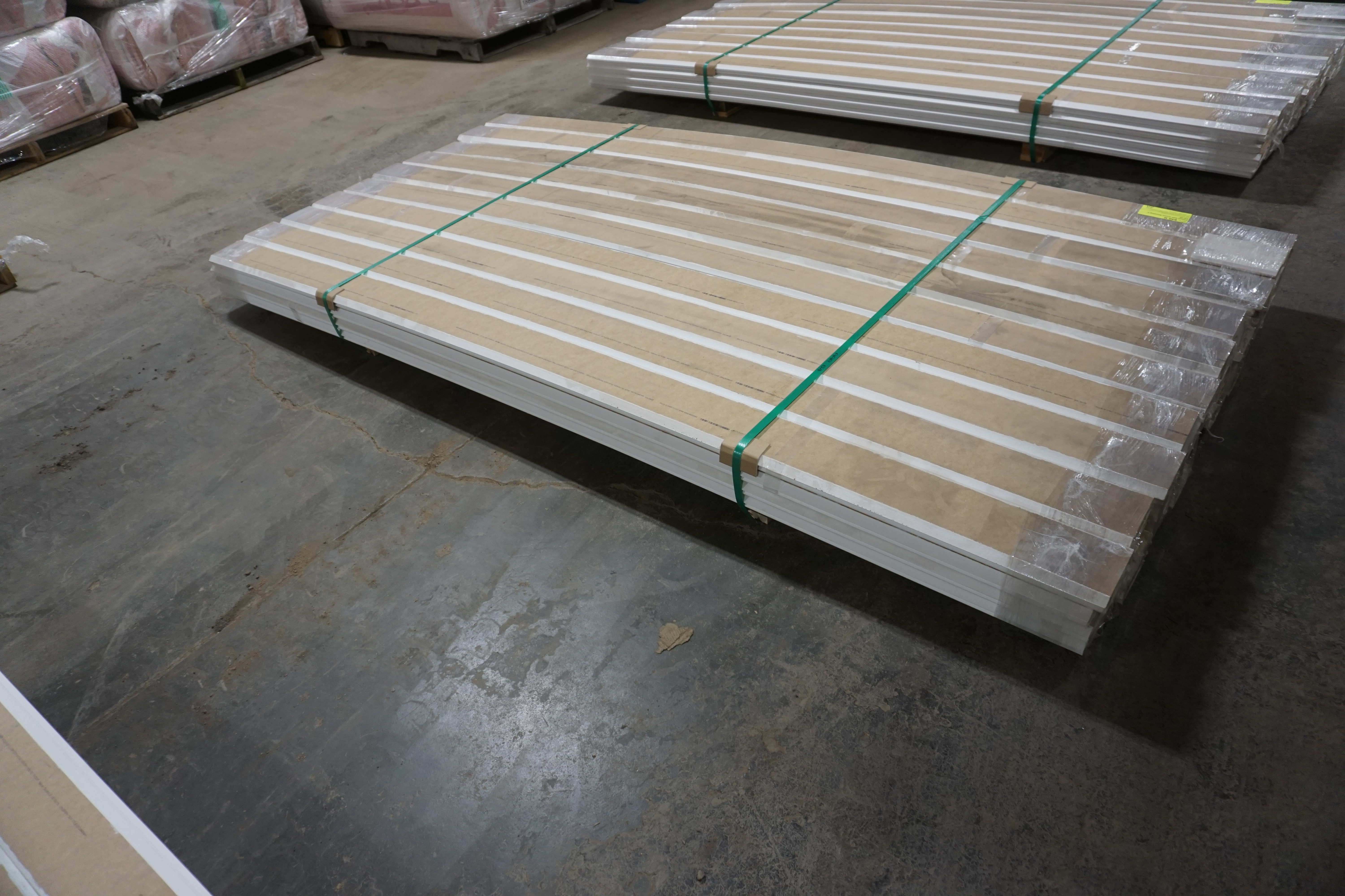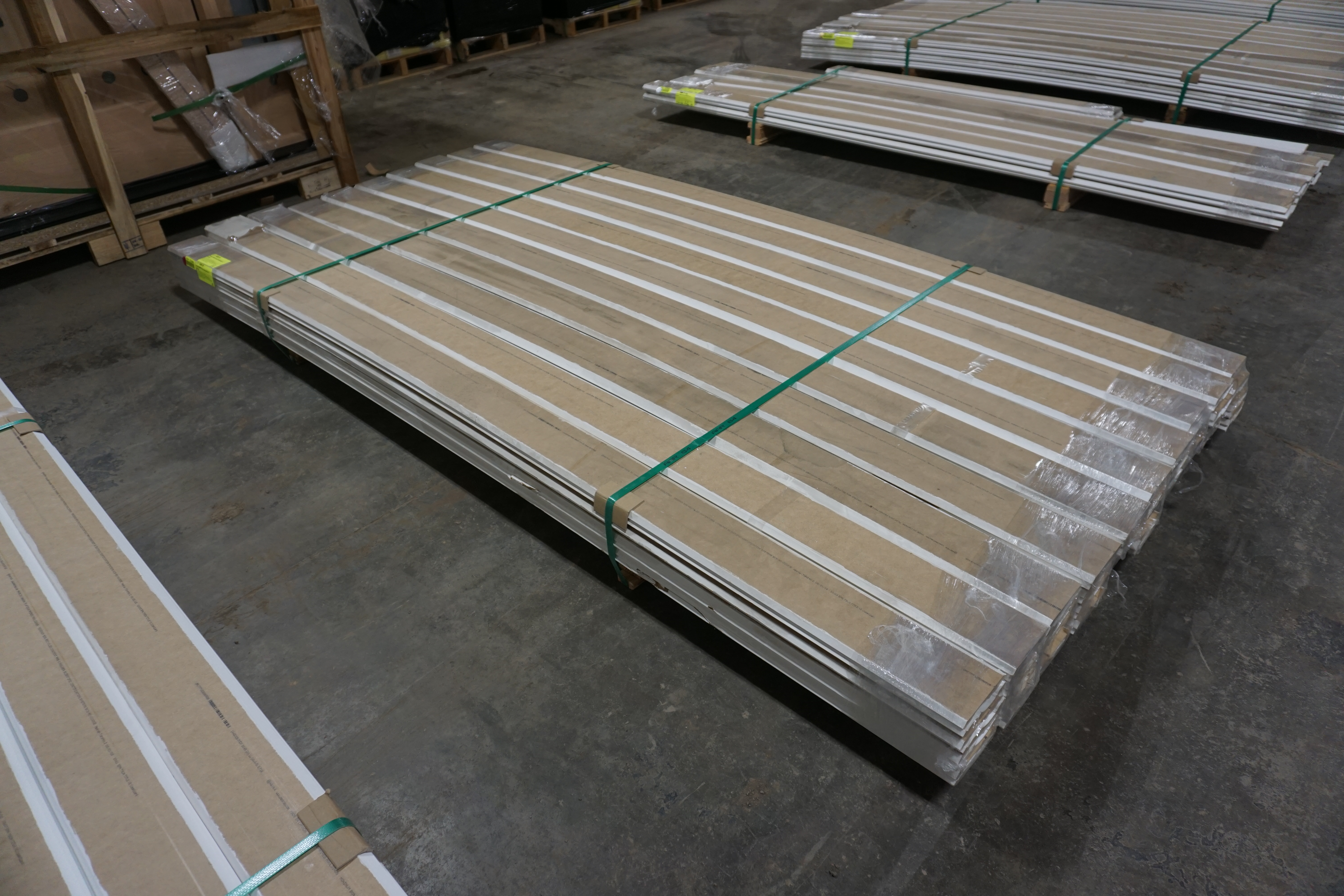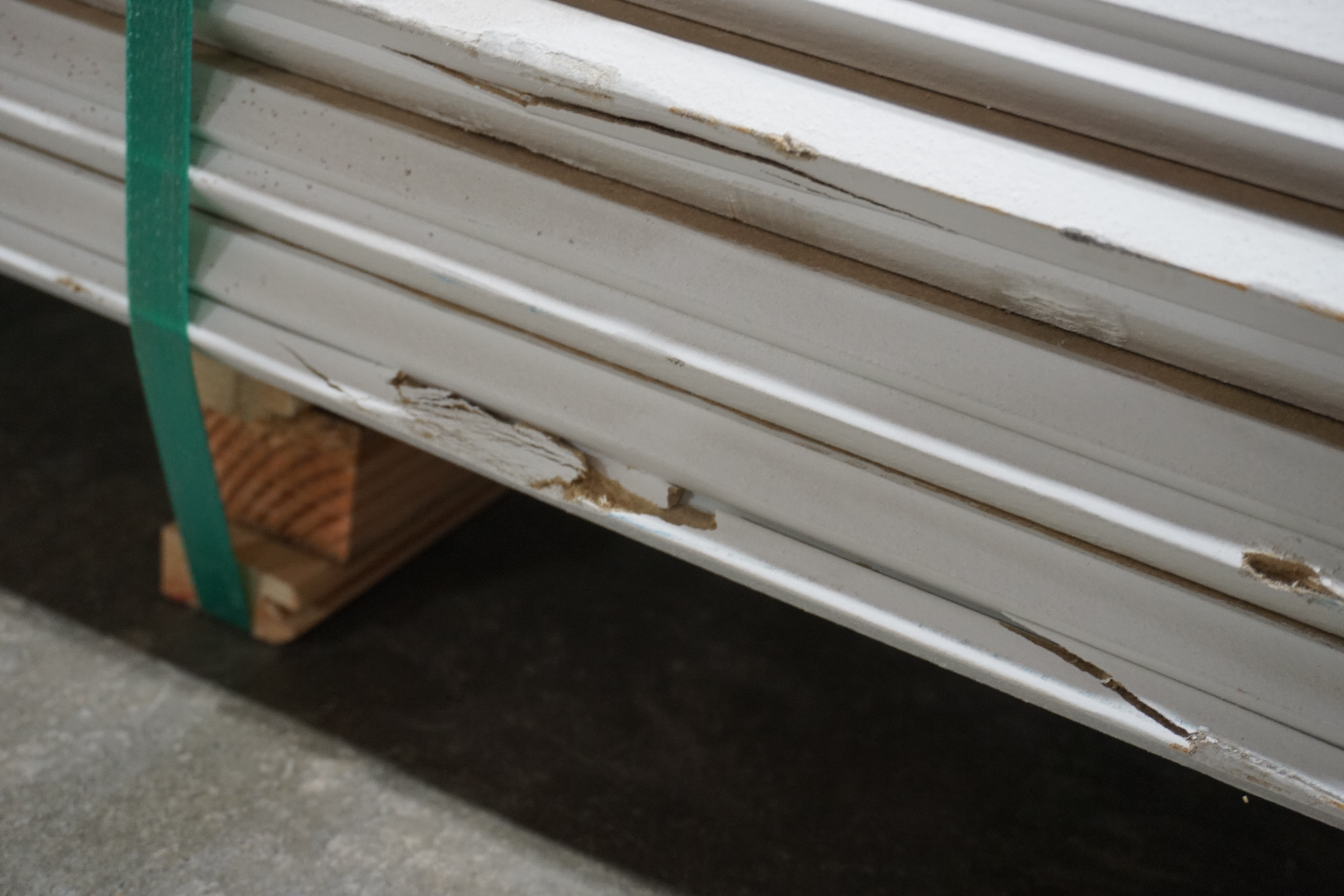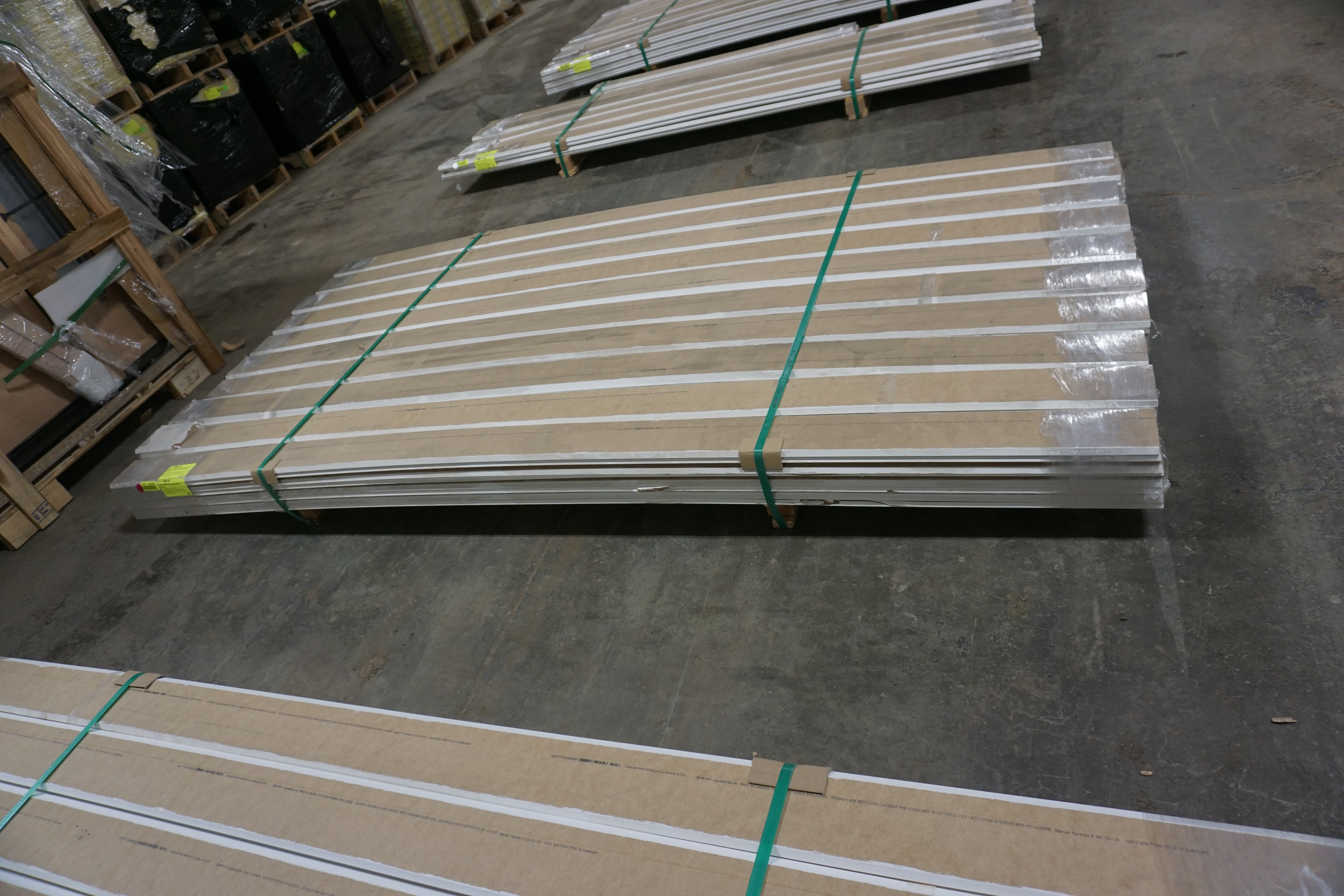 Primed MDF Crown Moulding 4 5/8" x 8' *SEE DESCRIPTION*. Actual Dimensions: 11/16" x 4 5/8" x8'. Grade: B. 80 Pieces. *Please pay attention to photos. Some boards have slight damage.* *Any manufacturer warranties are NOT VALID with any purchase at our Auctions unless stated otherwise.. Weight: 660. Sold by: Linear Foot. Sold as: Quantity x Price.