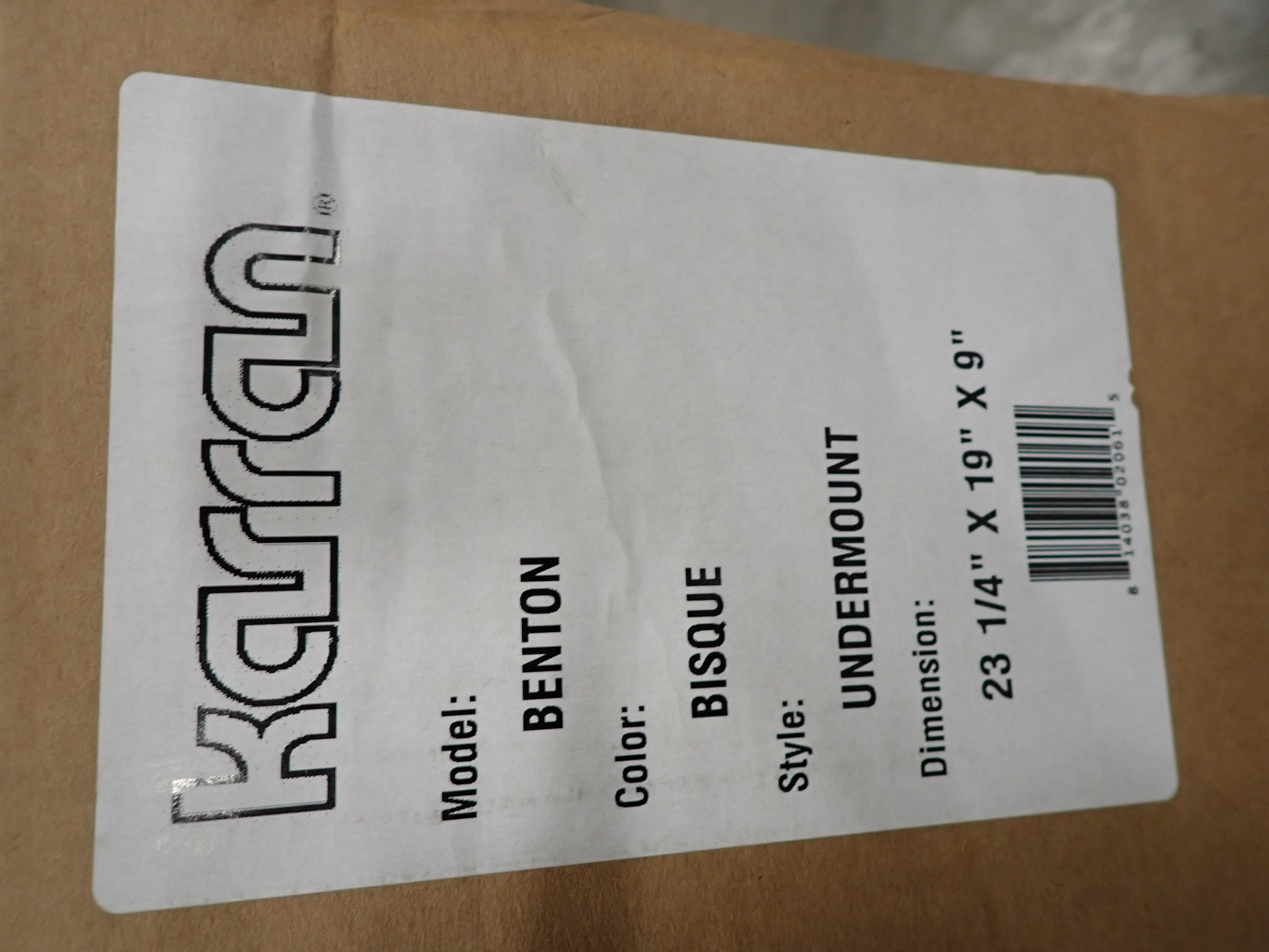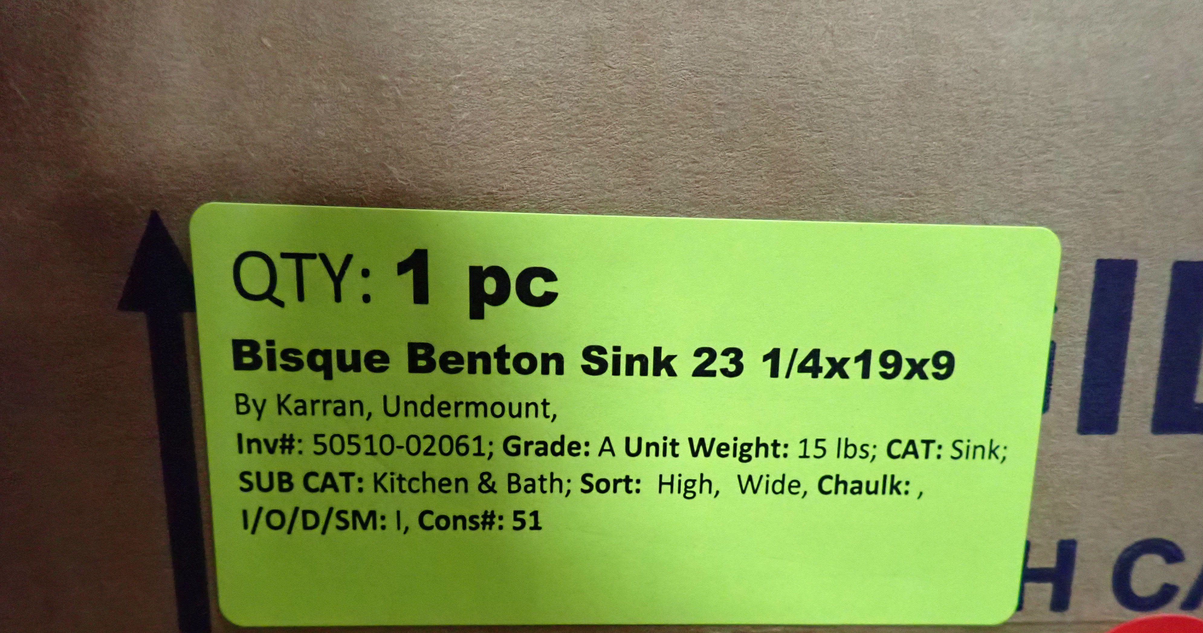 Bisque Benton Acrylic Sink 23". By: Karran, Acrylic D-Shaped Single Bowl Undermount. Actual Dimensions are 23 1/4"(L), 19"(W), 9"(D) Grade: A *Any manufacturer warranties are NOT VALID with any purchase at our Auctions unless stated otherwise.. Weight: 15. Sold by: Piece. Sold as: Quantity x Price.