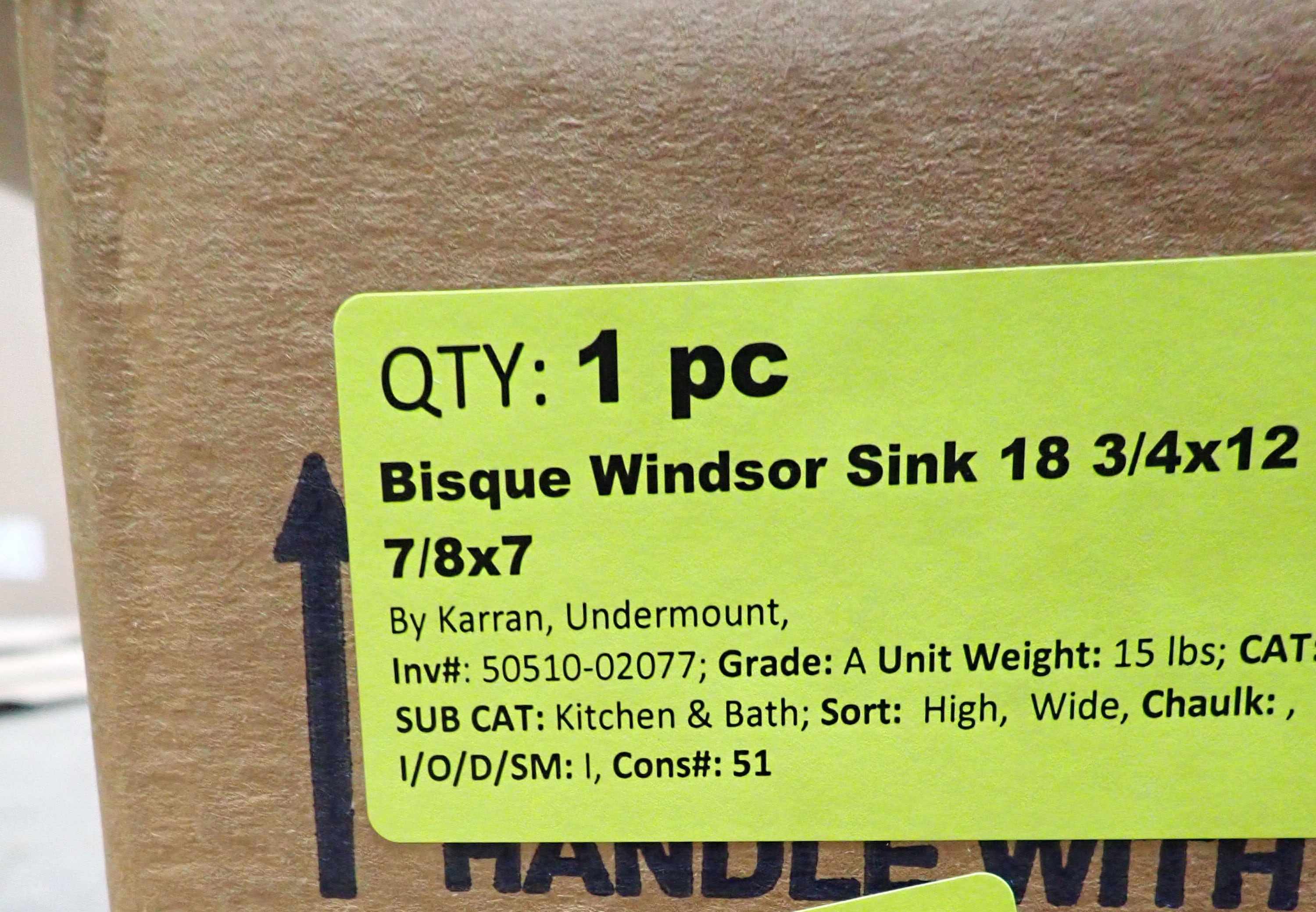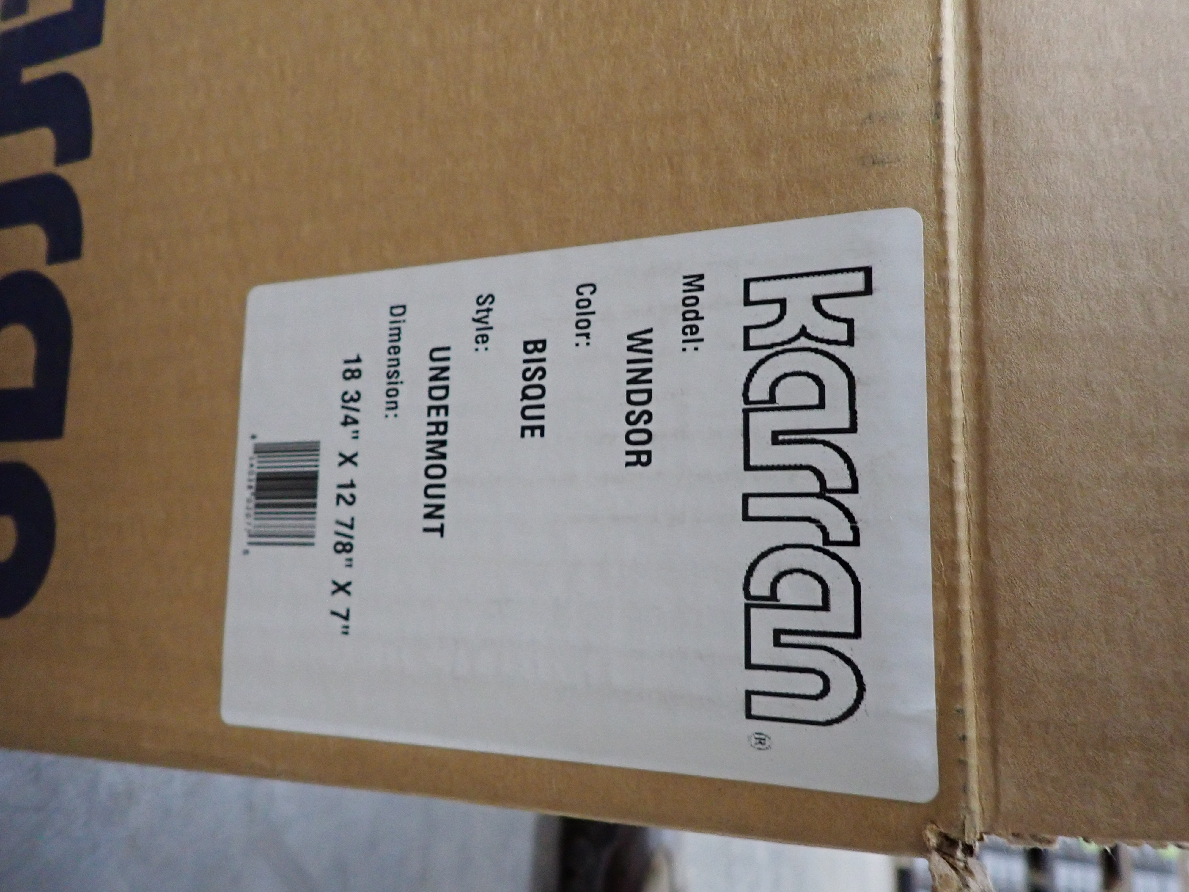Bisque Windsor Sink 18 3/4" x 12 7/8" x7". By: Karran, Undermount. Grade: A. *Any manufacturer warranties are NOT VALID with any purchase at our Auctions unless stated otherwise.. Weight: 15. Sold by: Piece. Sold as: Quantity x Price.