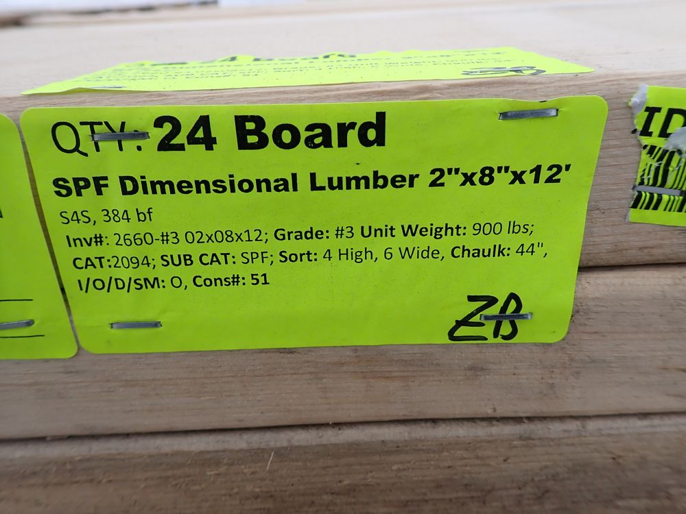 SPF Dimensional Lumber 2" x 8" x 12' * SEE DESCRIPTION*. S4S, 384 bf. Grade: #3. *Weathered&Light Mold, All Boards.* *Any manufacturer warranties are NOT VALID with any purchase at our Auctions unless stated otherwise.. Weight: 900. Sold by: Board. Sold as: Quantity x Price.