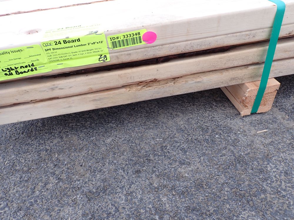 SPF Dimensional Lumber 2" x 8" x 12' * SEE DESCRIPTION*. S4S, 384 bf. Grade: #3. *Weathered&Light Mold, All Boards.* *Any manufacturer warranties are NOT VALID with any purchase at our Auctions unless stated otherwise.. Weight: 900. Sold by: Board. Sold as: Quantity x Price.